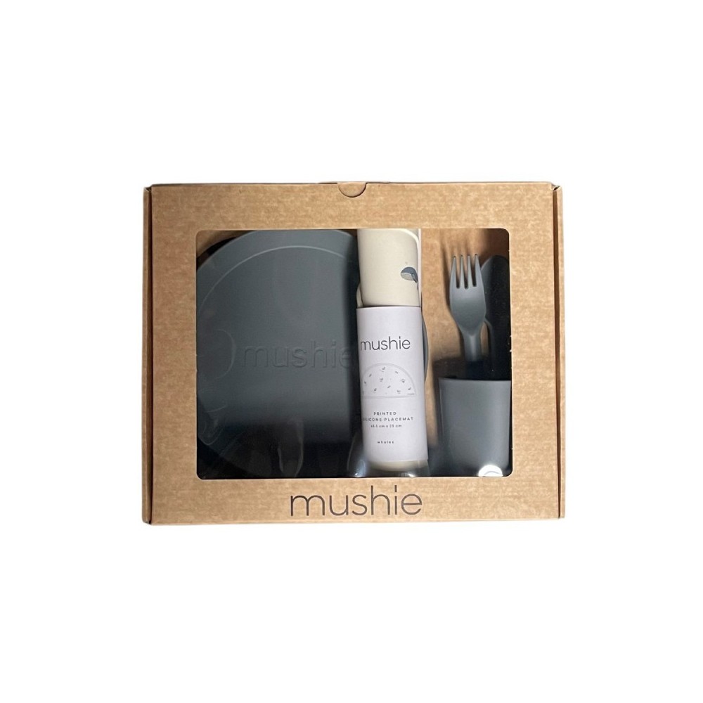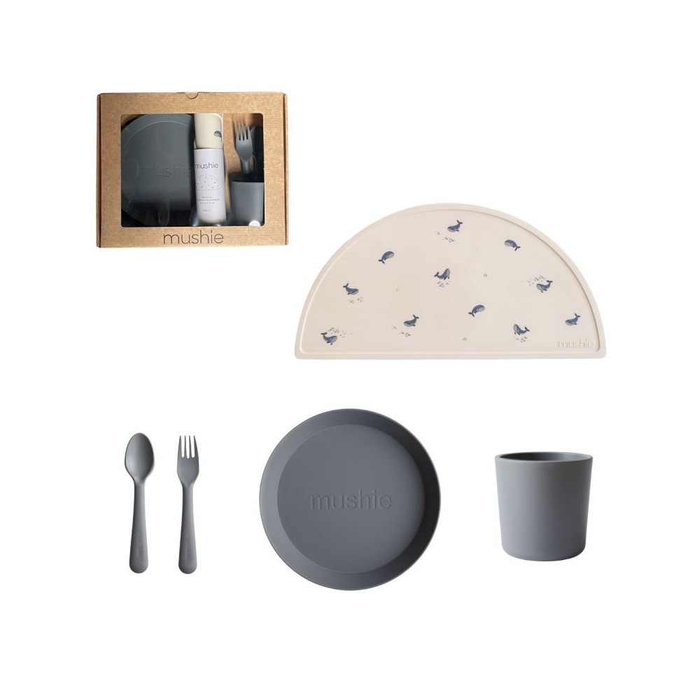Le joli coffret cadeau Repas de la marque Mushie est un joli ensemble à offrir comme cadeau de naissance ou cadeau de grossesse. Avec ce joli service en plastique et le set de table en silicone assorti, le bébé sera la vedette pendant ses premiers repas!