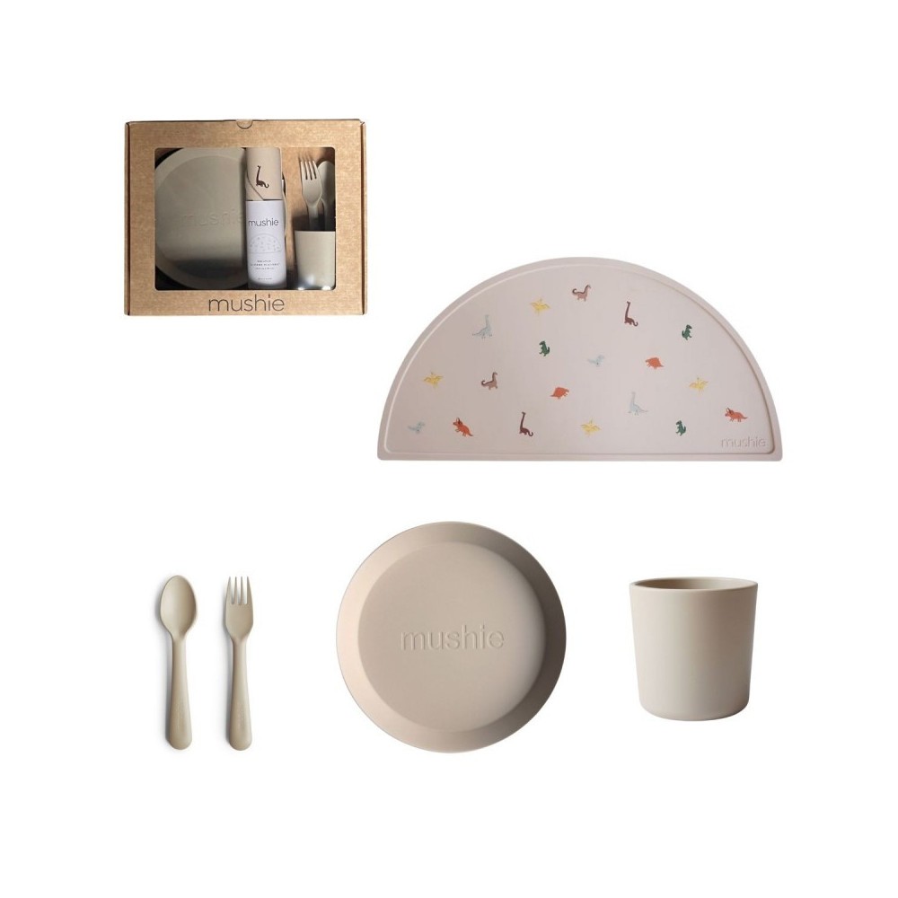 Le joli coffret cadeau Repas de la marque Mushie est un joli ensemble à offrir comme cadeau de naissance ou cadeau de grossesse. Avec ce joli service en plastique et le set de table en silicone assorti, le bébé sera la vedette pendant ses premiers repas!
