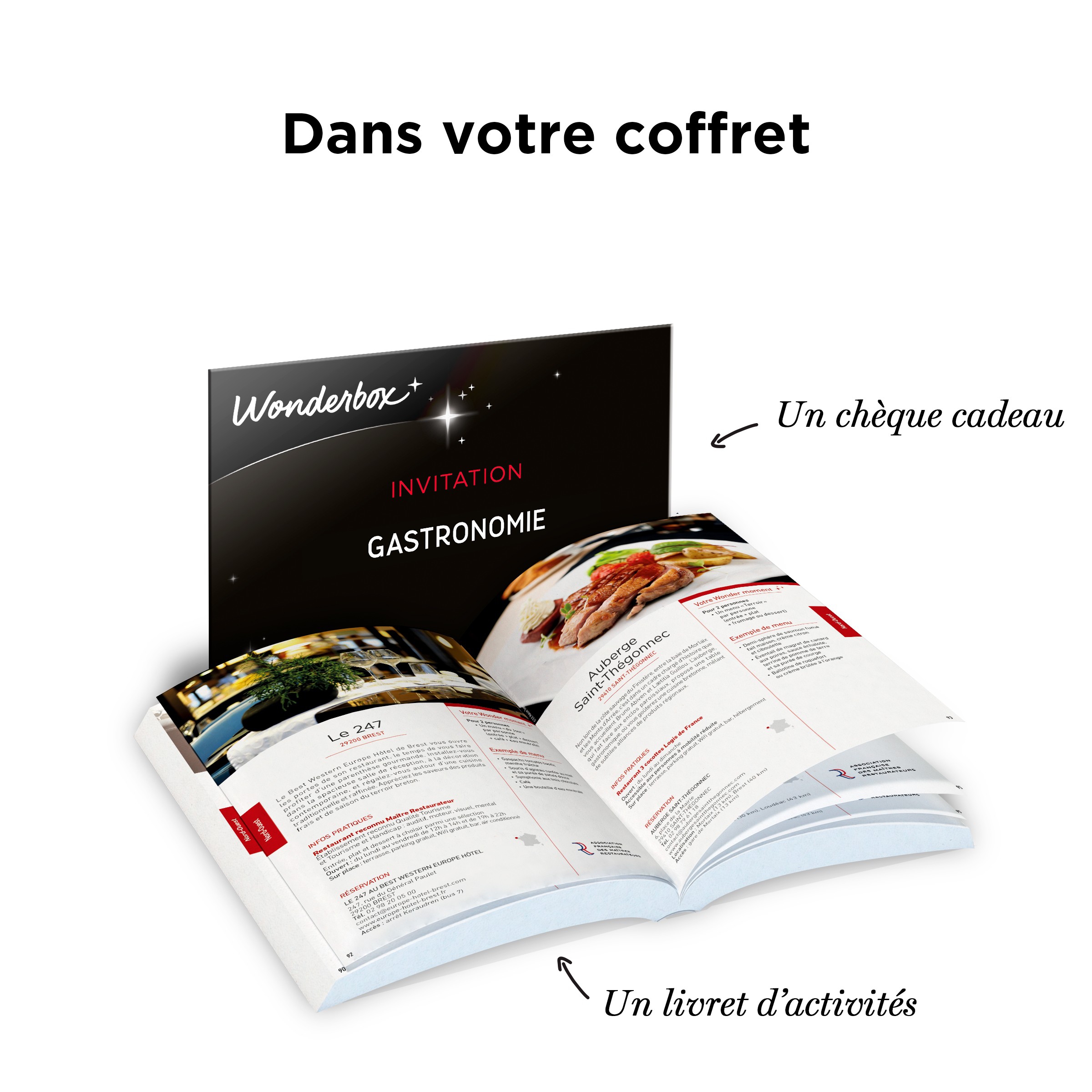 Ce délicieux coffret va combler plus d’un fin gourmet ! Wonderbox met dans votre assiette plus de 1 000 tables françaises. Un dîner romantique en face des jardins d’un somptueux château, un repas gastronomique au cœur d’un agréable parc arboré, un cadre idyllique lors d’une évasion culinaire à deux pas des Champs-Élysées à Paris ou encore un moment de partage gourmand en Côte-d'Or… Cet instant gastronomique promet d’être magique !