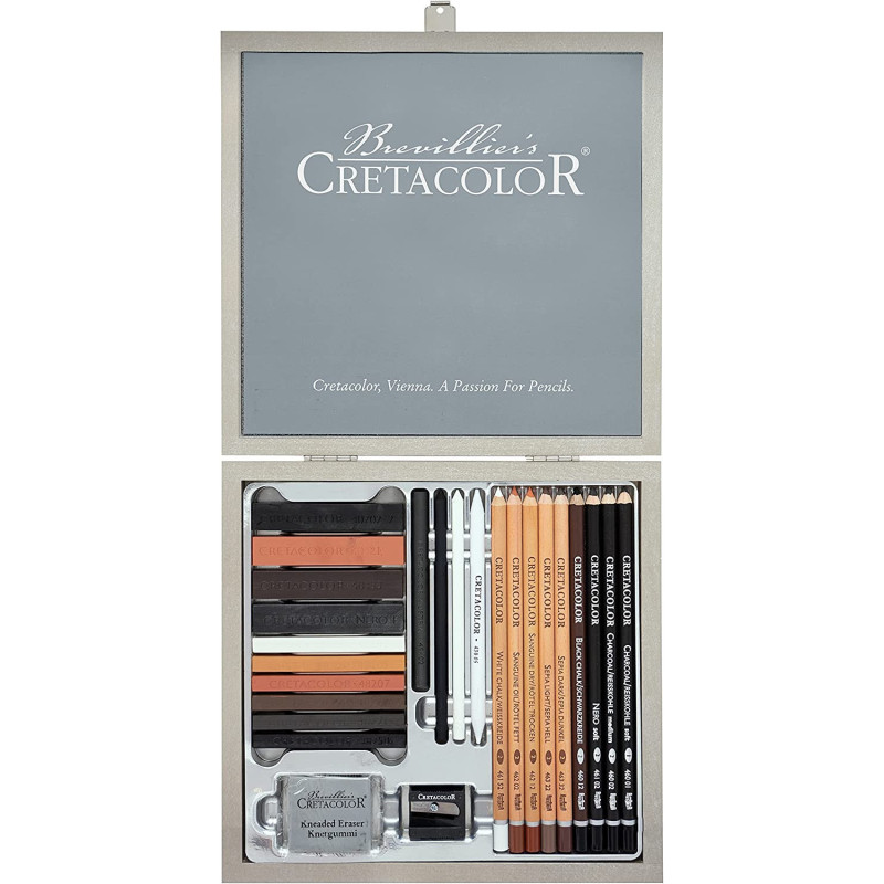 | Libellé | Coffret - Crayons beaux-arts - Fusain - Sanguine - Craie - Gomme - Taille-crayon - Cretacolor |