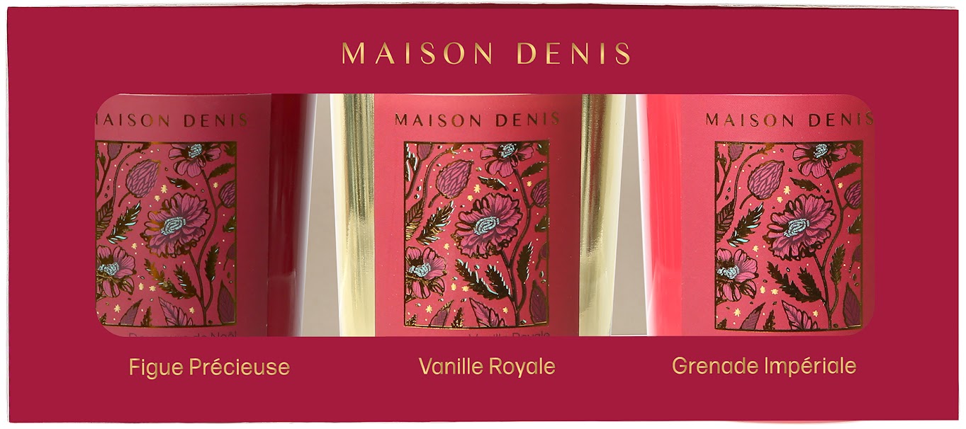 Coffret de 3 bougies en (verre rose/framboise/or) - cire parfumée non colorée