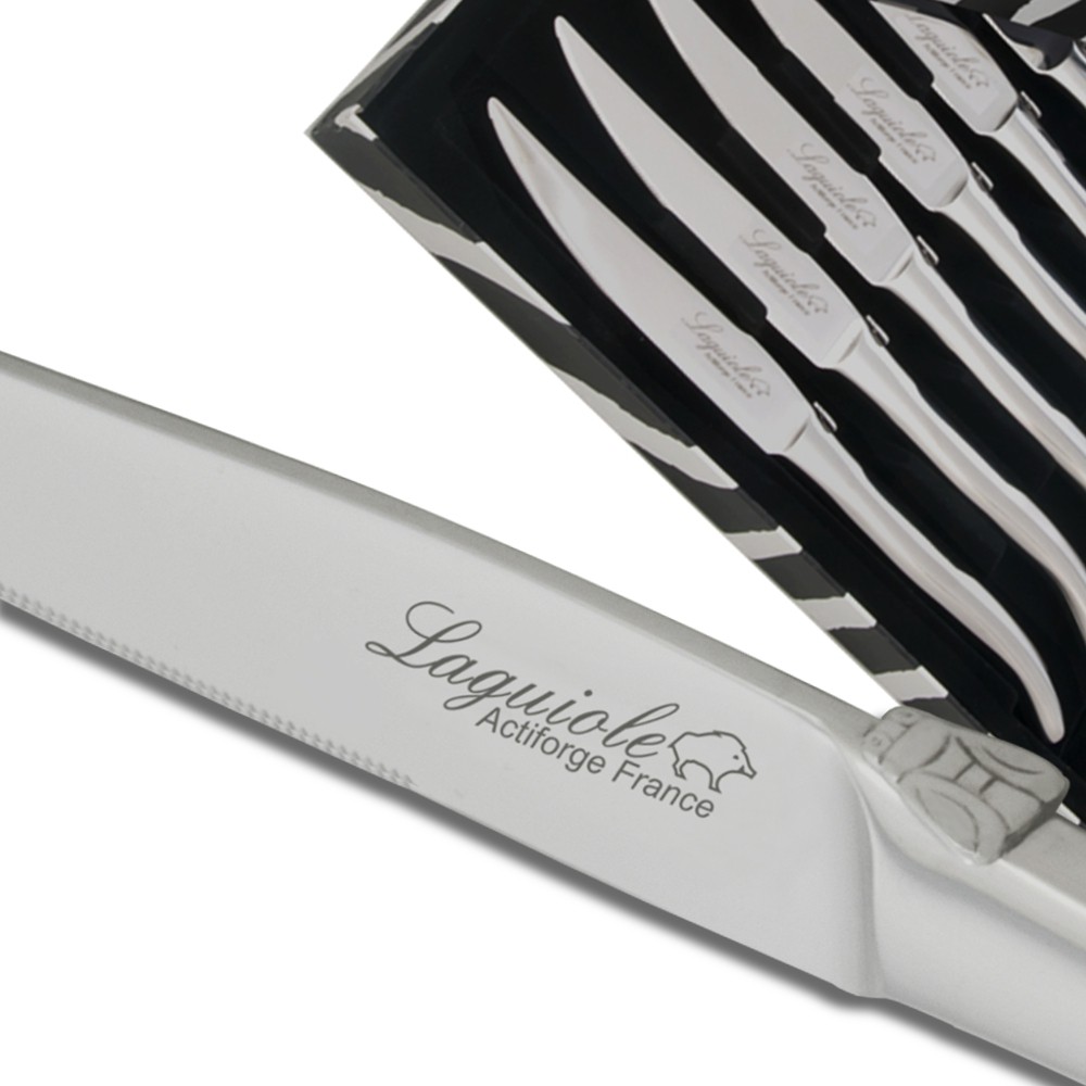 Coffret de 6 couteaux steak Laguiole de table inox plat