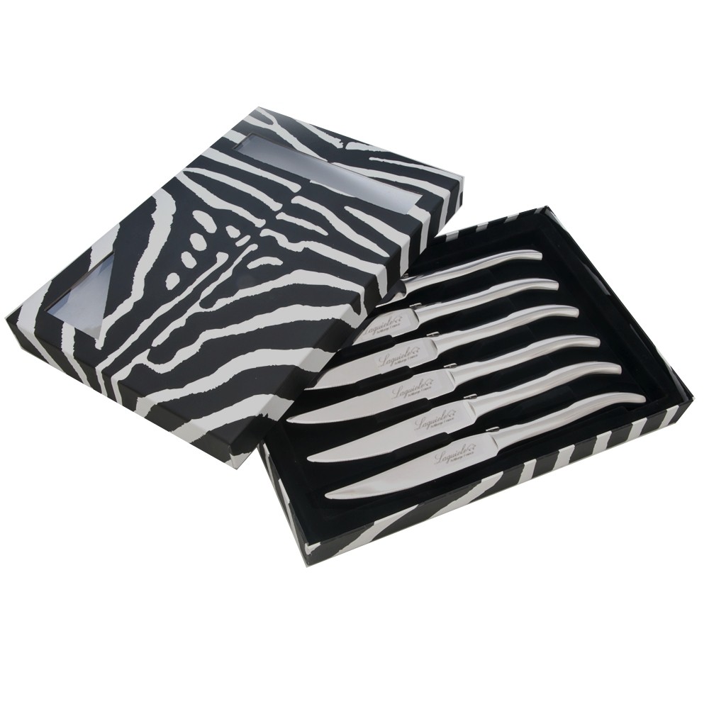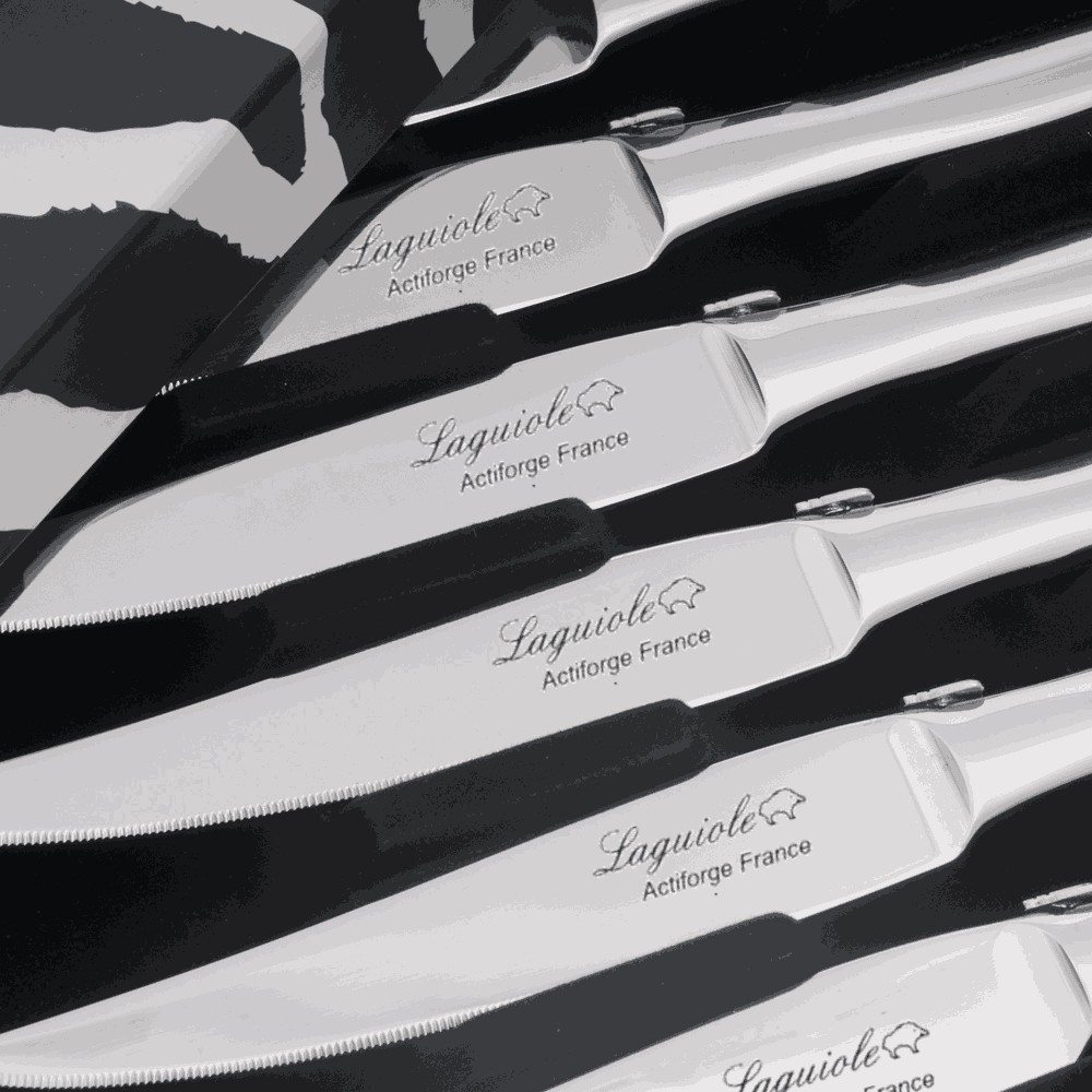 Coffret de 6 couteaux steak Laguiole de table inox plat