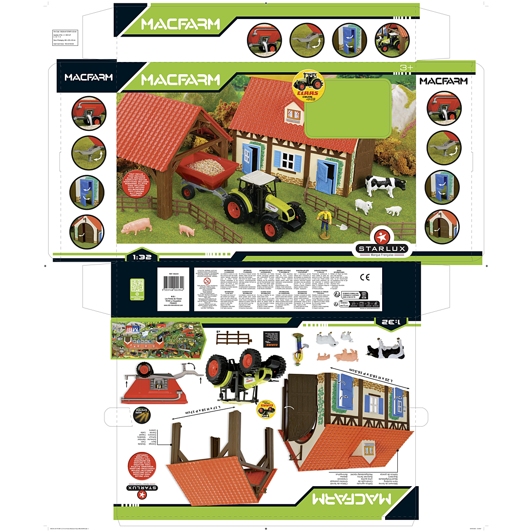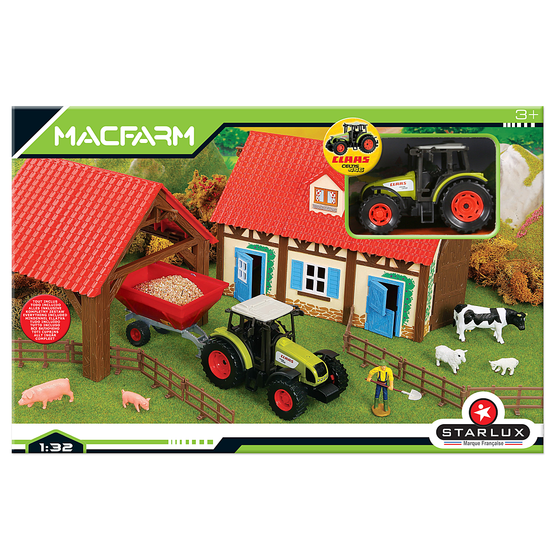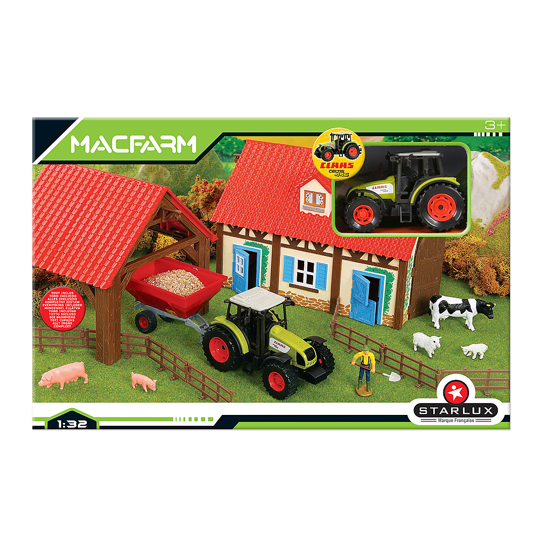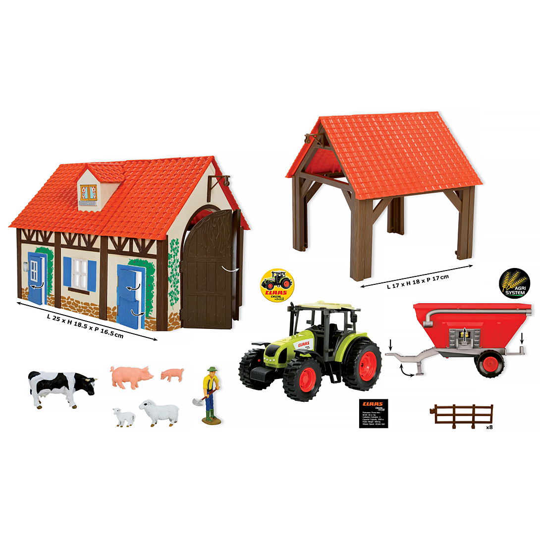 | Libellé | Coffret de ferme comprenant des batiments a assembler avec son fermier, ses animaux de la ferme, le tracteur Claas et ses remorques etc ... Echelle 1 |