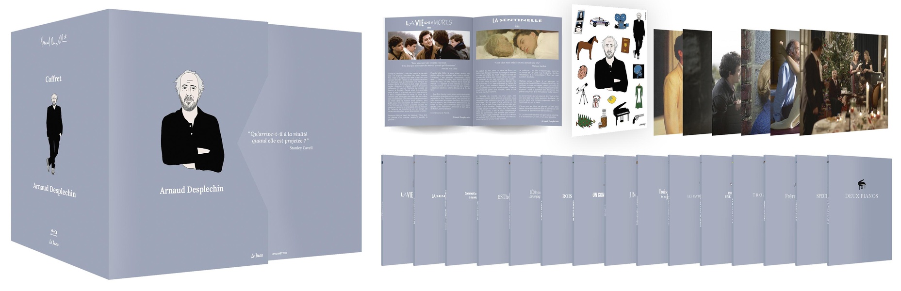 Coffret Arnaud Desplechin 14 films comprenant : La Vie des morts, La Sentinelle, Comment je me suis disputé, Esther Kahn, Leo en jouant dans la compagnie des hommes, Rois & reine, Un conte de Noël, Jimmy P., Trois souvenirs de ma jeunesse, Les Fantômes d'Ismaël, Roubaix, une lumière, Tromperie, Frère et Soeur, Spectateurs !
