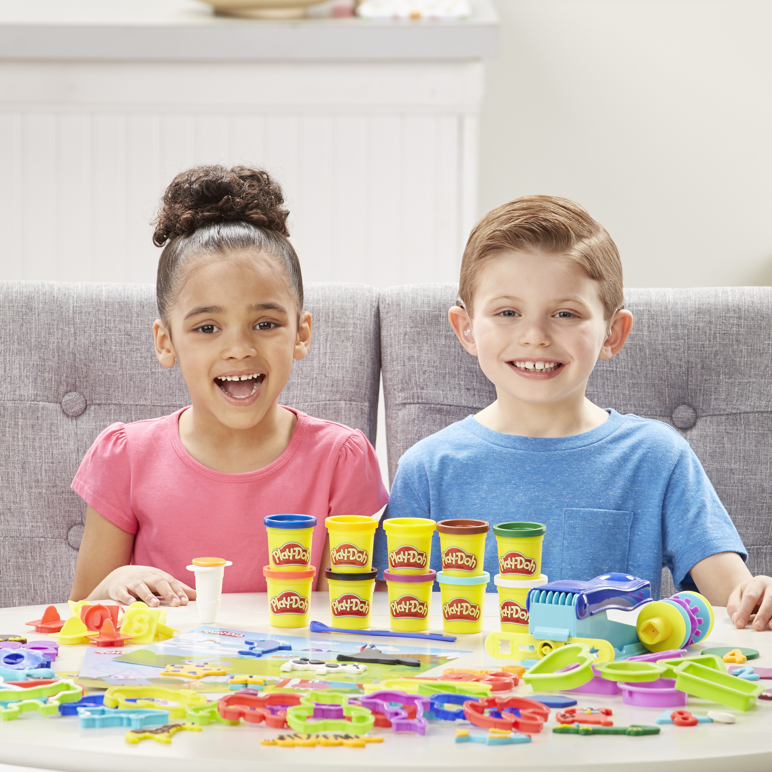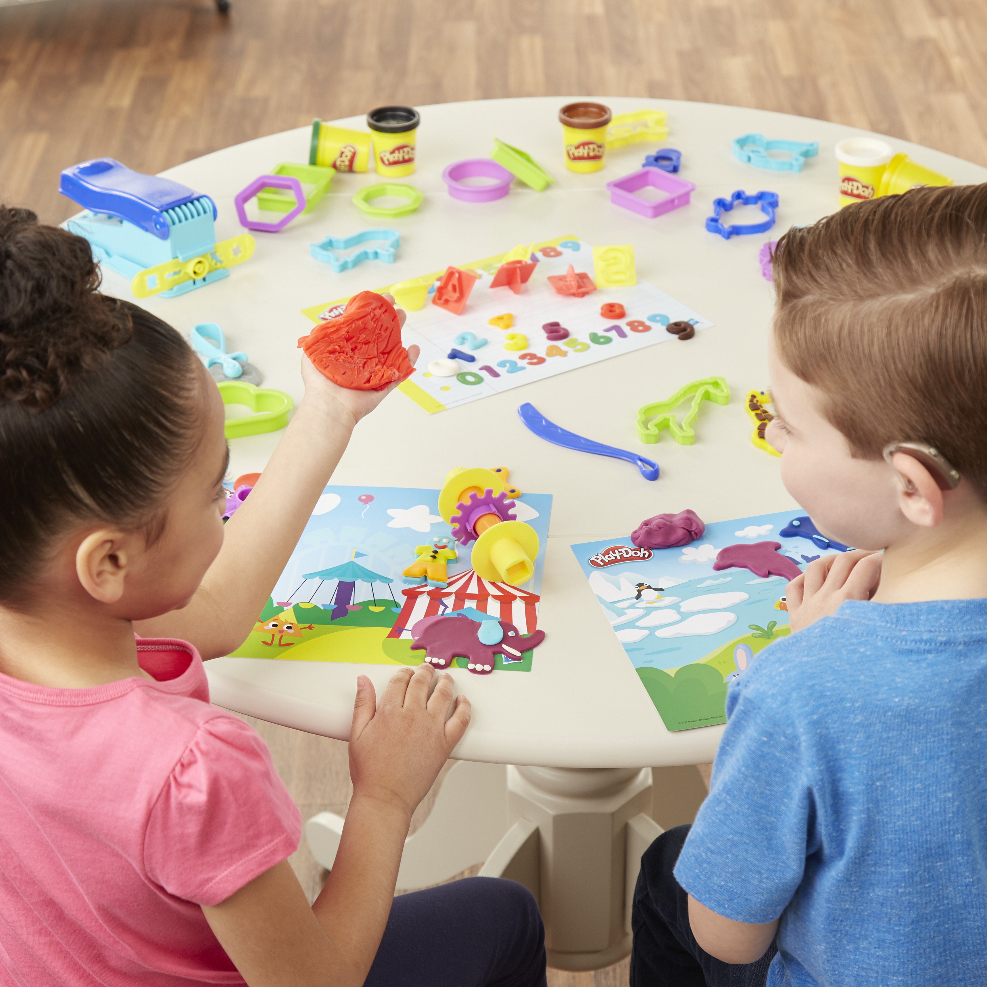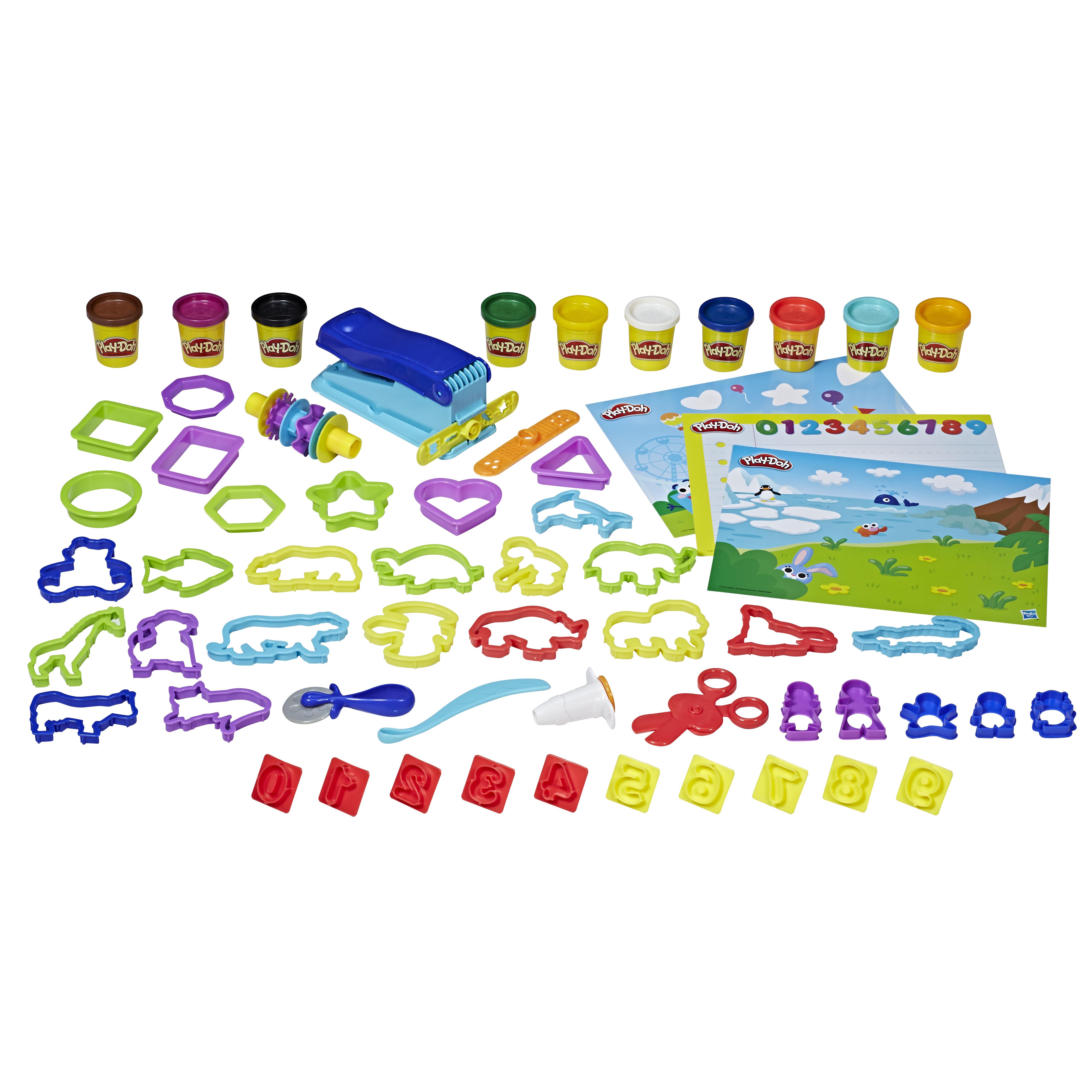 Les enfants s'amuseront à explorer les chiffres, les formes, les animaux et d'autres thèmes avec Play-Doh ! Avec les 10 pots et les 50 outils du coffret, les enfants auront de quoi s'amuser en couleurs. En effet, les 3 napperons thématiques, les divers tampons, les emporte-pièces et les autres accessoires faciles à utiliser permettent de découvrir à l'infini. De plus, le Serpentin est l'outil rêvé pour créer des formes rigolotes. Ce coffret complet permettra aux enfants de partager et d'explorer le jeu tout en s'exprimant.