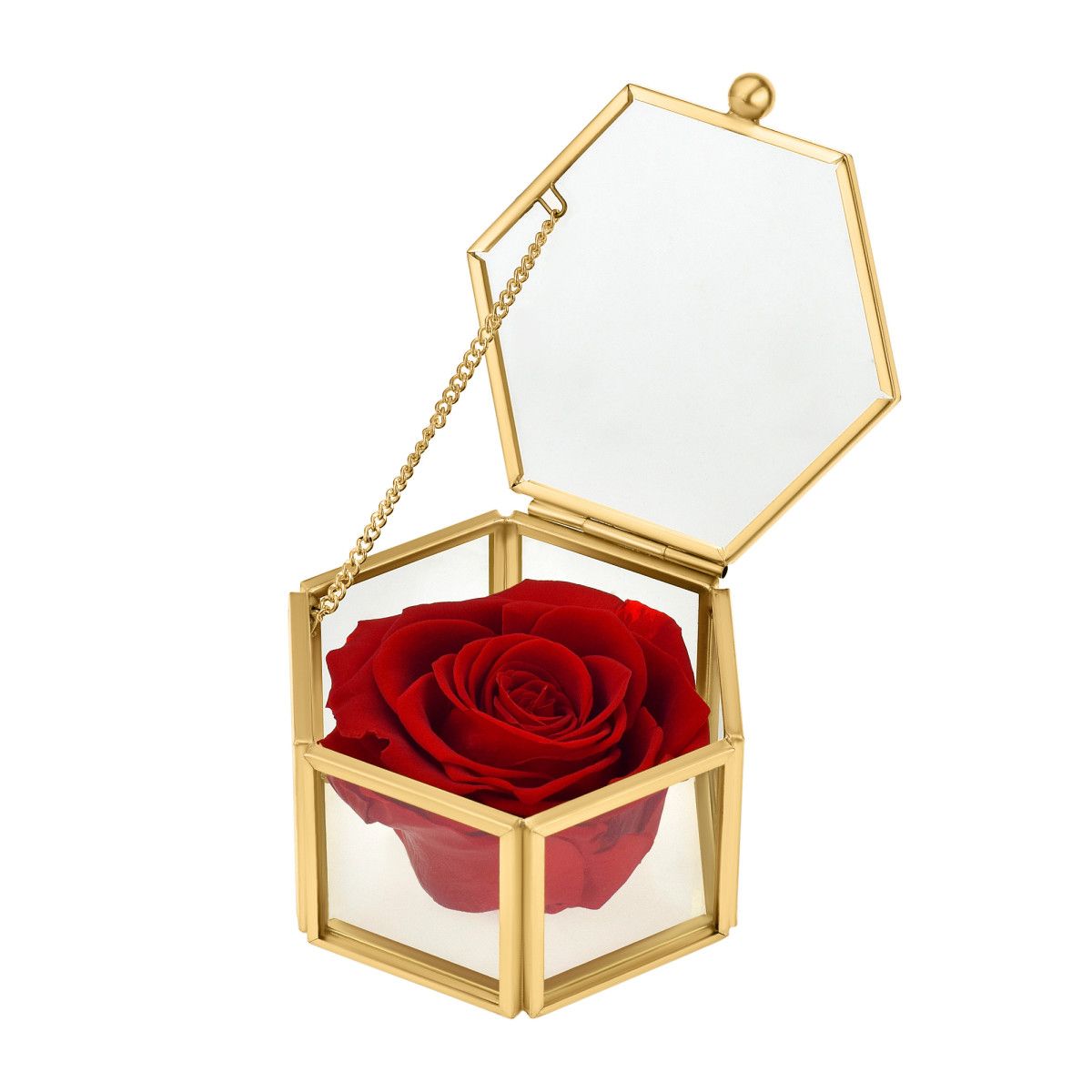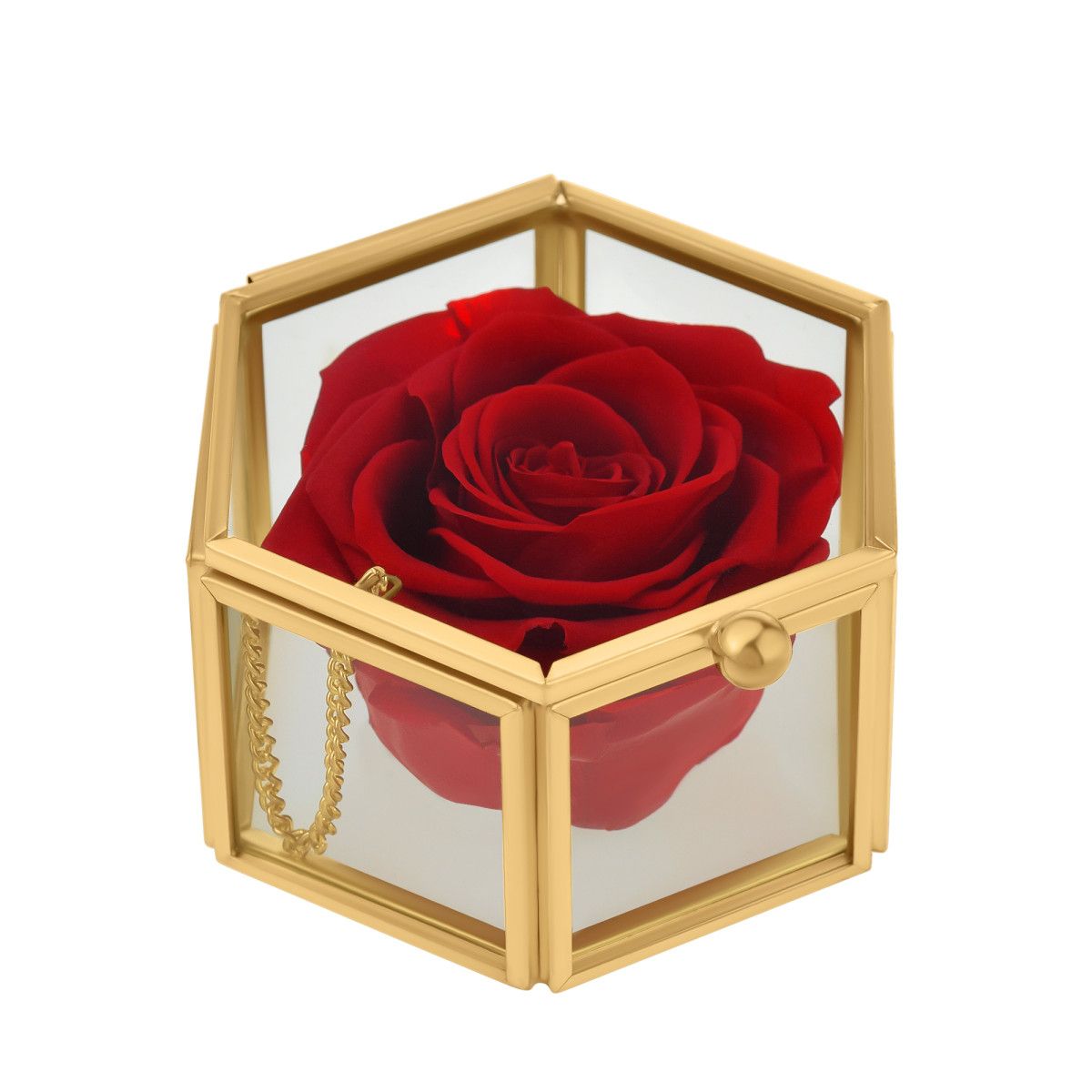 Coffret en verre décoré d'une rose éternelle - stabilisée