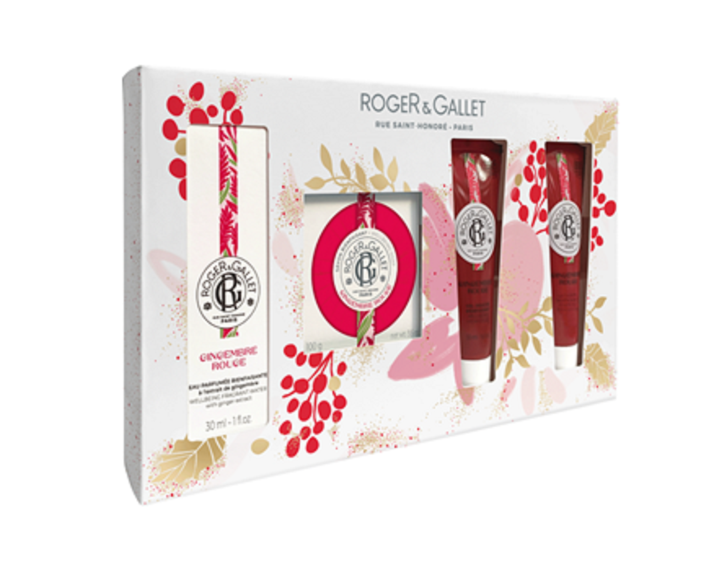 Rituel Parfumé La maison Roger&Gallet célèbre l’Art de la Toilette à la Française depuis 1862 et signe l’Eau Parfumée Bienfaisante Gingembre Rouge. La sensualité du gingembre, réveillée par les notes épicées des baies roses, dans une fragrance florale fruitée, au bienfait énergisant. Prolongez les bienfaits de cette eau parfumée grâce à son rituel corporel, composé de l’iconique Savon Parfumé à coeur, du Gel Douche et du Lait Corps Bienfaisants.