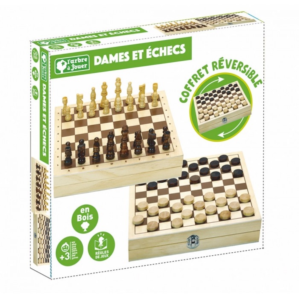 Coffret jeu de dames et d'échecs