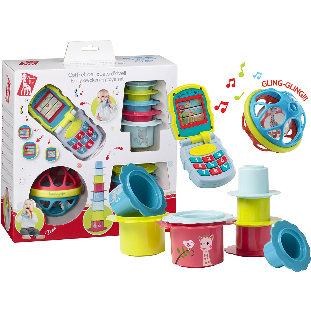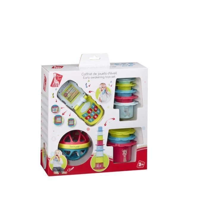 | Libellé | Coffret jouets d'éveil Sophie la girafe (musical phone + soft'ball + 8 fleurs gigognes) |