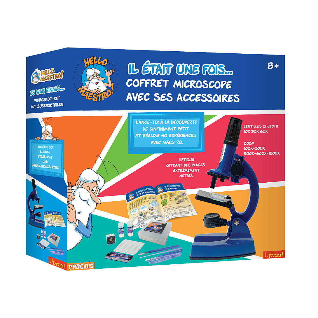 Plus qu'un simple microscope, un coffret de découverte complet, ludique et facile a utiliser. << Hello Maestro Il était une fois >> est une série de vulgarisation scientifique et historique Dans le 1er volet crée il y a 40 ans, elle retrace l'histoire de l'humanité : des origines de la vie au 20eme siecle.