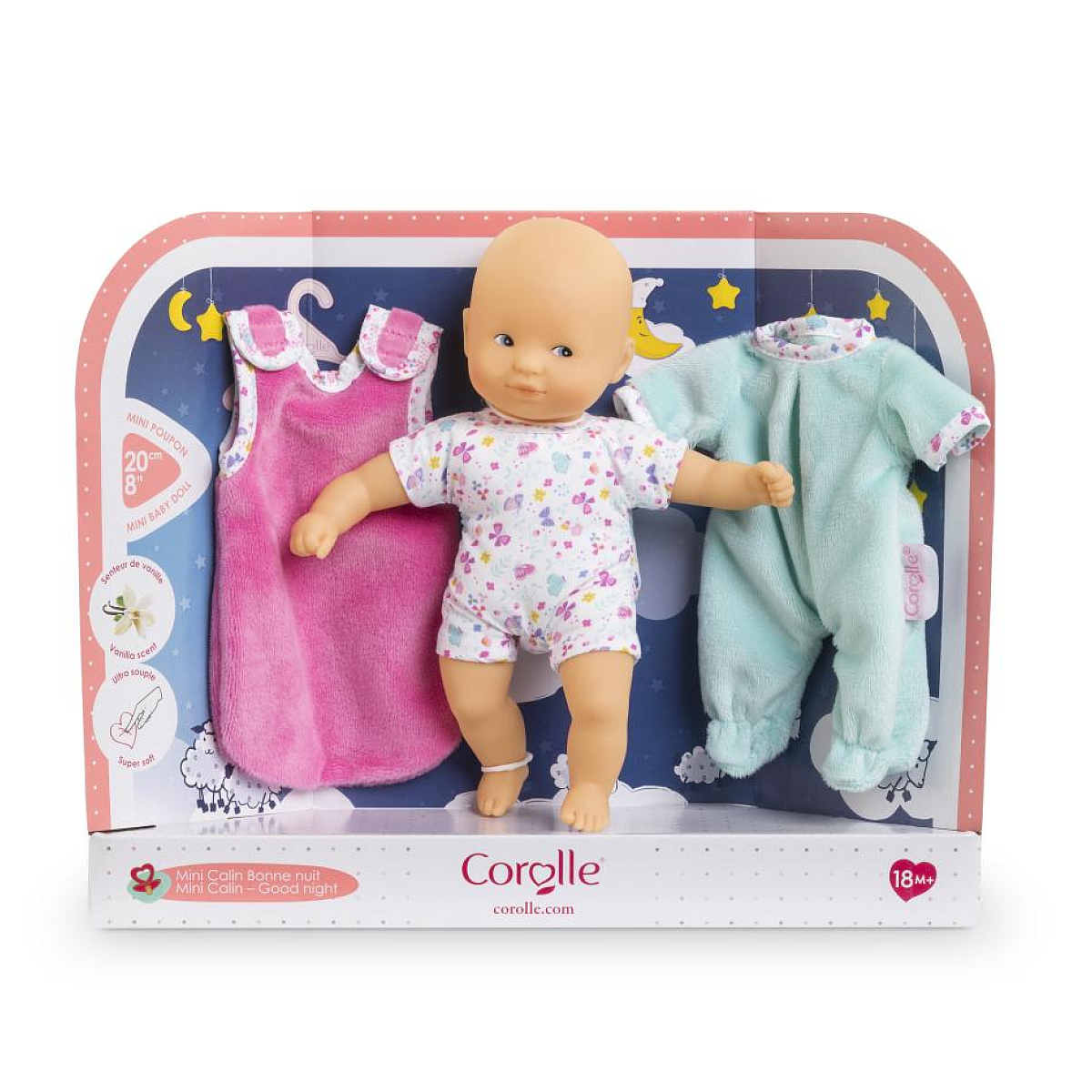 | La boîte contient | Un petit poupon Mini Calin de 20 cm, un pyjama et une turbulette |