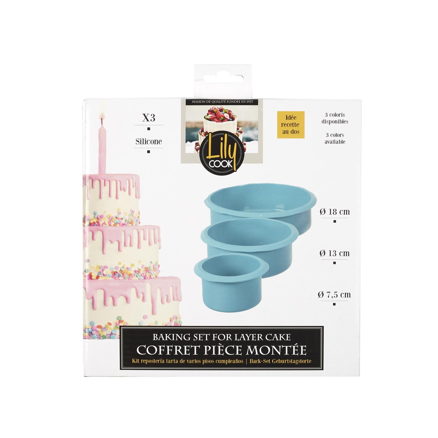 | Plus produit | Réalisez aisément des pièces montées d'anniversaire grâce à ce coffret de pâtisserie ! Epatez et régalez vos convives avec des délicieuses recettes montées, sucrées ou salées. Diamètres : 18-13-7.5 cm COLORIS ALÉATOIRE |