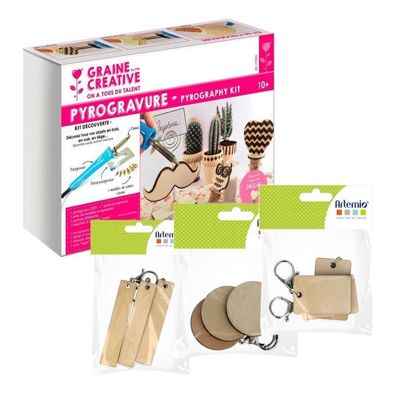 | Libellé | Coffret pyrogravure + 9 porte-clés bois à décorer |