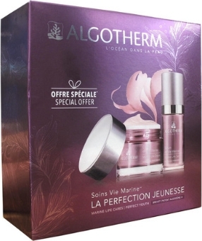 Algotherm Coffret Soins Vie Marine est une offre spéciale qui associe deux produits de la gamme Vie Marine pour une perfection jeunesse. - Algotherm Sérum de Vie Marine 30 ml à la texture fondante relance l'activité jeunesse de la peau pour une action anti-âge globale. Associant 4 algues, sa formule unique permet de réduire l'apparence des rides, raffermir les contours du visage, réduire l'apparence des taches. Il permet d'hydrater la peau et la rend visiblement plus jeune. - l'algue Undaria Pinnatifida réduit l'apparence des rides, - l'algue Alaria Esculenta améliore la fermeté, - l'algue Ulva Lactuca améliore l'élasticité, - l'algue Dictyopteris Membranacea atténue l'apparence des taches. - Algotherm Crème de Vie Marine 50 ml à la texture fine et enveloppante est une crème qui relance l'activité jeunesse de la peau pour une action anti-âge globale. Associant 4 algues, sa formule unique permet de réduire l'apparence des rides, raffermir les contours du visage, réduire l'apparence des taches. Elle permet de nourrir la peau et la sublimer. - l'algue Undaria Pinnatifida réduit l'apparence des rides, - l'algue Alaria Esculenta améliore la fermeté, - l'algue Ulva Lactuca améliore l'élasticité, - l'algue Dictyopteris Membranacea atténue l'apparence des taches.