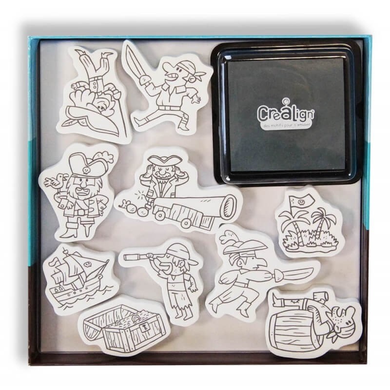 Kit de personnages à tamponner sur le thème des Pirates. Le lot comprend 10 tampons et son encreur pour créer un véritable univers de pirates.