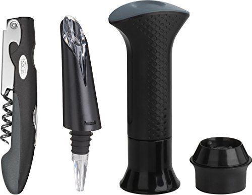 Grâce à la pompe à vin, vous pouvez préserver la fraîcheur du vin jusqu’à 1 semaine, on adore ! Que ce soit pour vous ou pour offrir, avec ce coffret de vin, vous ne pouvez pas vous tromper Fixer ce bec verseur sur votre bouteille équivaut à 30 minutes de décantation traditionnelle Cet aérateur à vin est muni d'un bec intelligent qui coupe la dernière goutte de vin, on adore ! Coffret contenant un tire bouchon sommelier, une pompe, un bouchon et un verseur aérateur