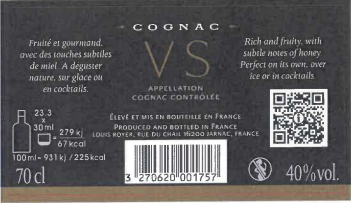 | Libellé | Cognac Louis Royer VS, 40 % vol. - 70 cl |
