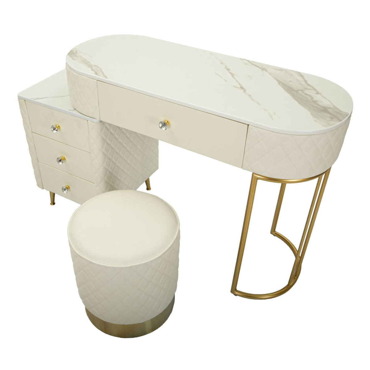 | Libellé | Coiffeuse Avec Pouf Effet Marbre "Sharon" 120 Blanc & Or |