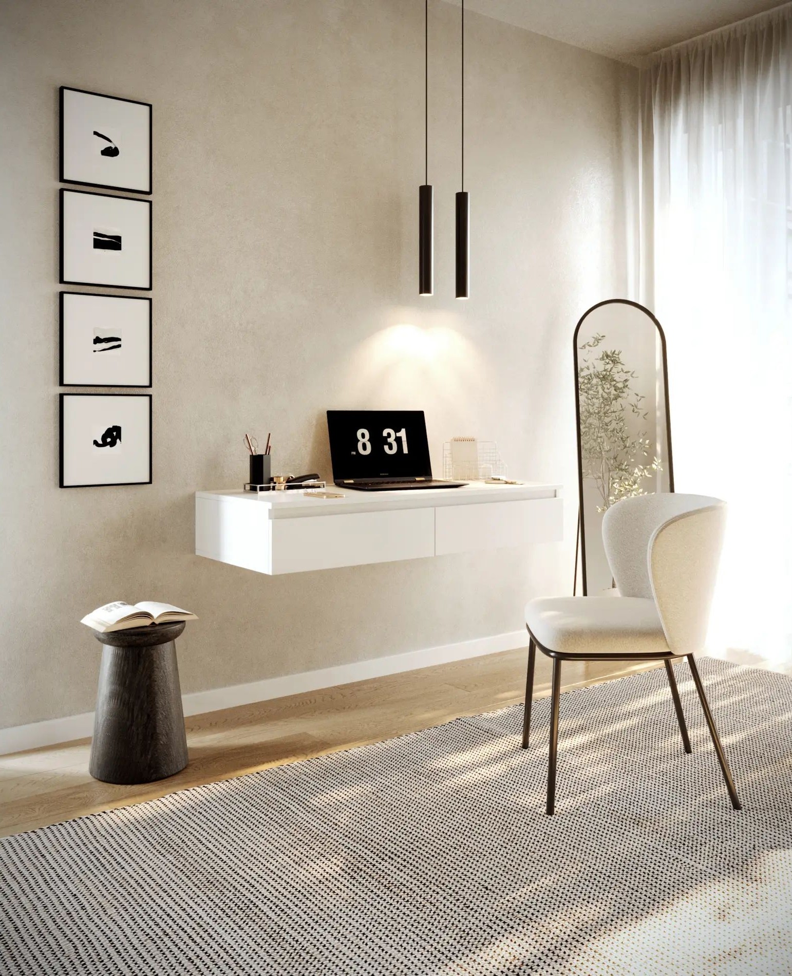 Fabriquée en panneau de particules de 16 mm, cette coiffeuse est conçue pour une utilisation quotidienne tout en conservant une apparence raffinée. Les bords renforcés en ABS assurent une meilleure protection contre les chocs et l’usure – un atout indispensable dans les espaces très sollicités. Grâce à sa structure suspendue, elle libère de l’espace au sol, tout en allégeant visuellement la pièce.