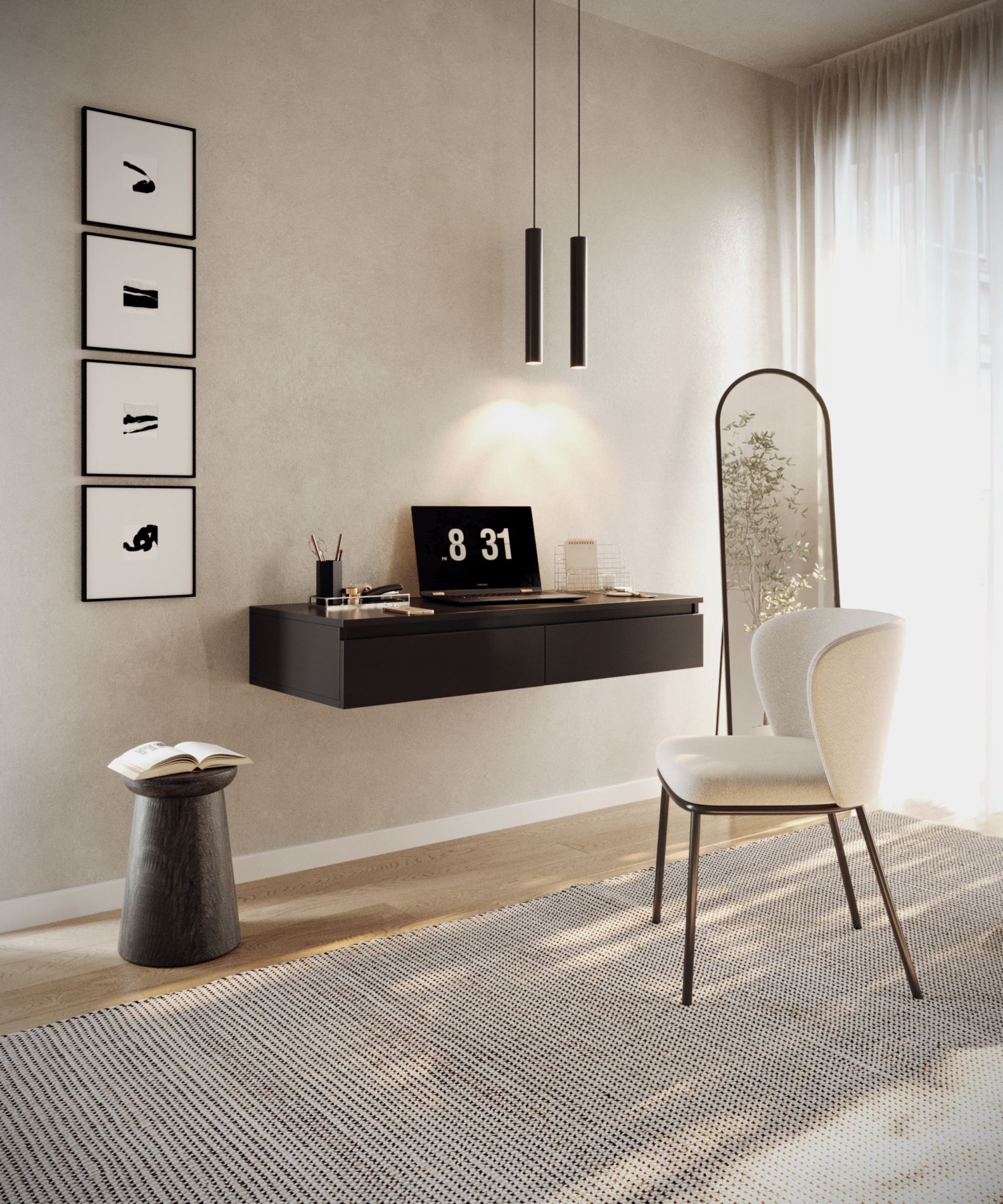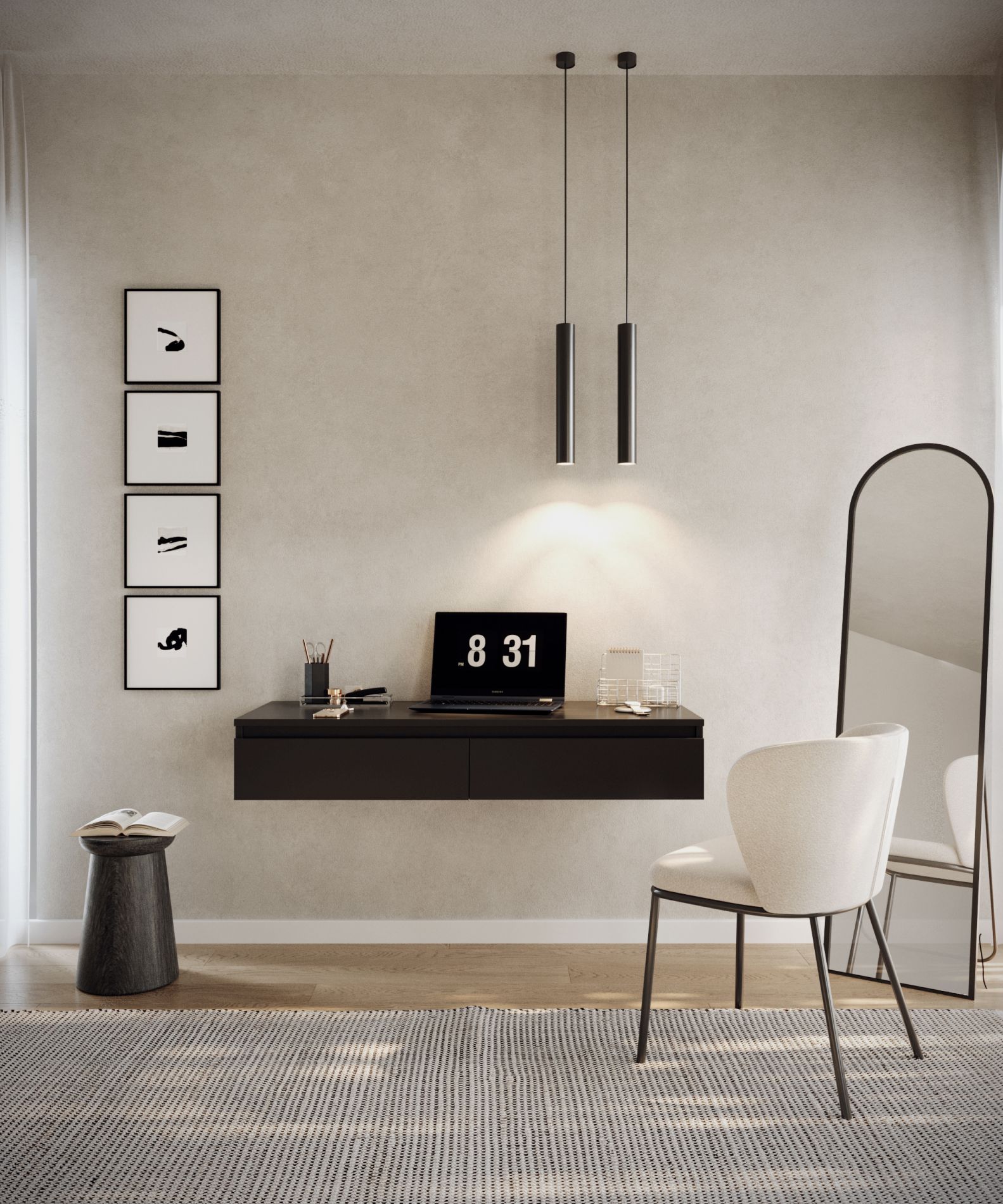 Fabriquée en panneau de particules de 16 mm, cette coiffeuse est conçue pour une utilisation quotidienne tout en conservant une apparence raffinée. Les bords renforcés en ABS assurent une meilleure protection contre les chocs et l’usure – un atout indispensable dans les espaces très sollicités. Grâce à sa structure suspendue, elle libère de l’espace au sol, tout en allégeant visuellement la pièce.