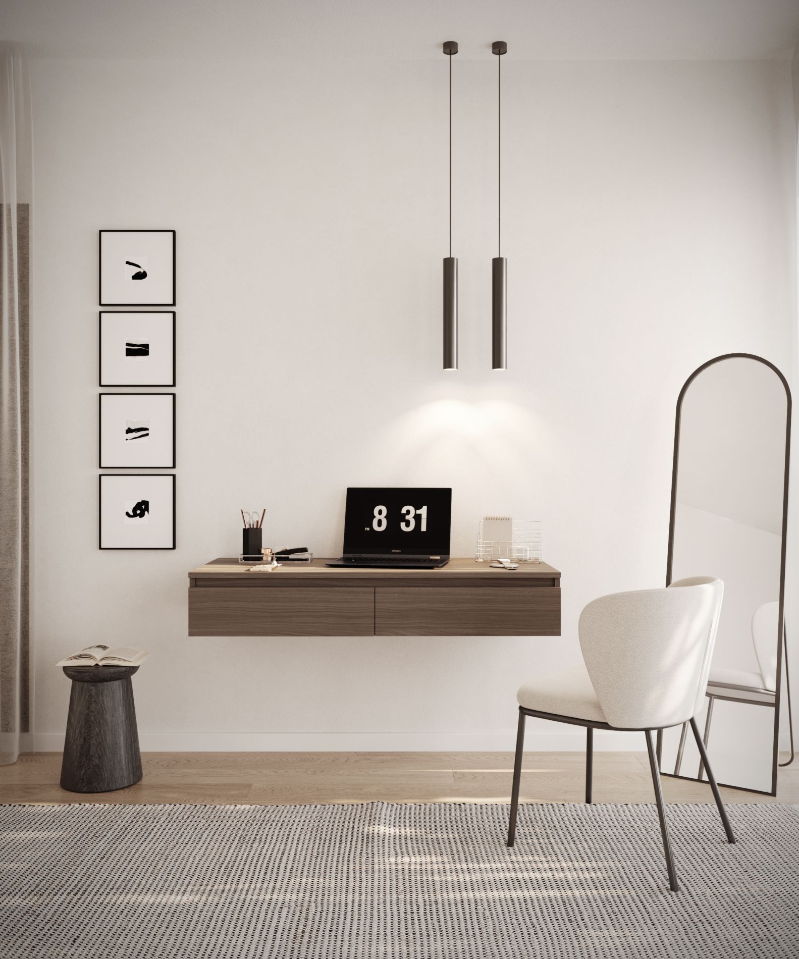 Fabriquée en panneau de particules de 16 mm, cette coiffeuse est conçue pour une utilisation quotidienne tout en conservant une apparence raffinée. Les bords renforcés en ABS assurent une meilleure protection contre les chocs et l’usure – un atout indispensable dans les espaces très sollicités. Grâce à sa structure suspendue, elle libère de l’espace au sol, tout en allégeant visuellement la pièce.