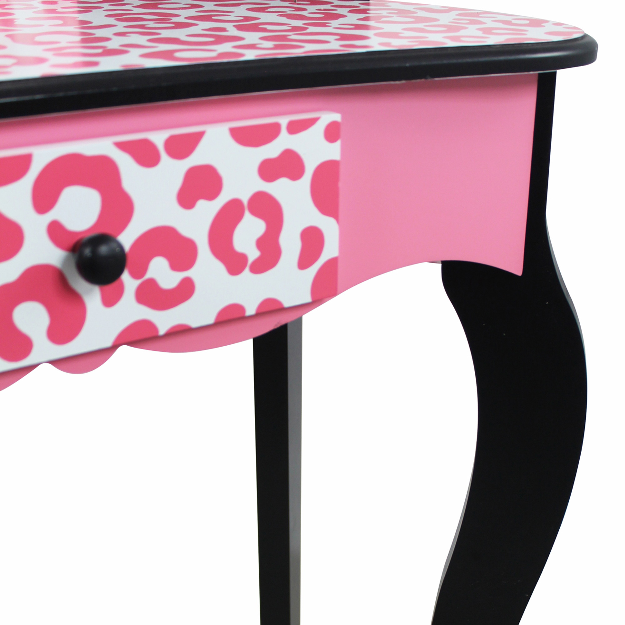 Offrez à votre fille un endroit idéal pour qu’elle puisse se faire belle et faites-lui plaisir avec un meuble à la mode avec cette coiffeuse enfant Fashion Prints de Fantasy Fields accompagnée de son tabouret aux imprimés léopard très tendance. Les motifs léopard en rose vif décorent magnifiquement cette coiffeuse en bois pour enfant et les finitions noires se marient parfaitement au style. Le miroir est très utile, c’est un excellent accessoire pour que les enfants puissent se regarder et s’assurer qu’ils seront les plus élégants à la fête ! Dimensions - Coiffeuse enfant (L) 59.70cm x (l) 29.20cm x (H) 97.80cm / Tabouret (L) 27.30cm x (l) 25.40cm x (H) 36.80cm.