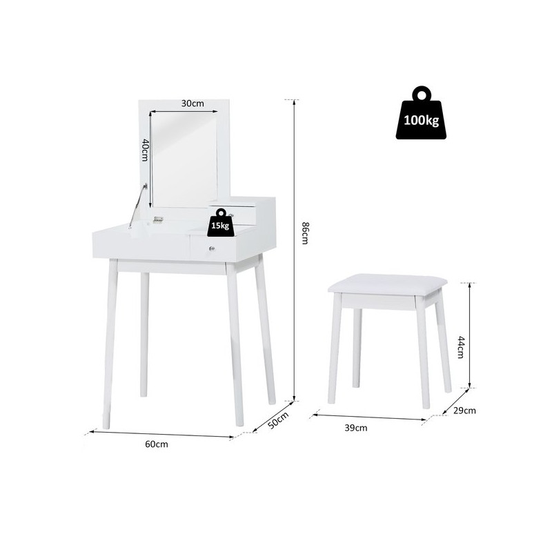 | Libellé | Coiffeuse et tabouret design NATHY blanc |