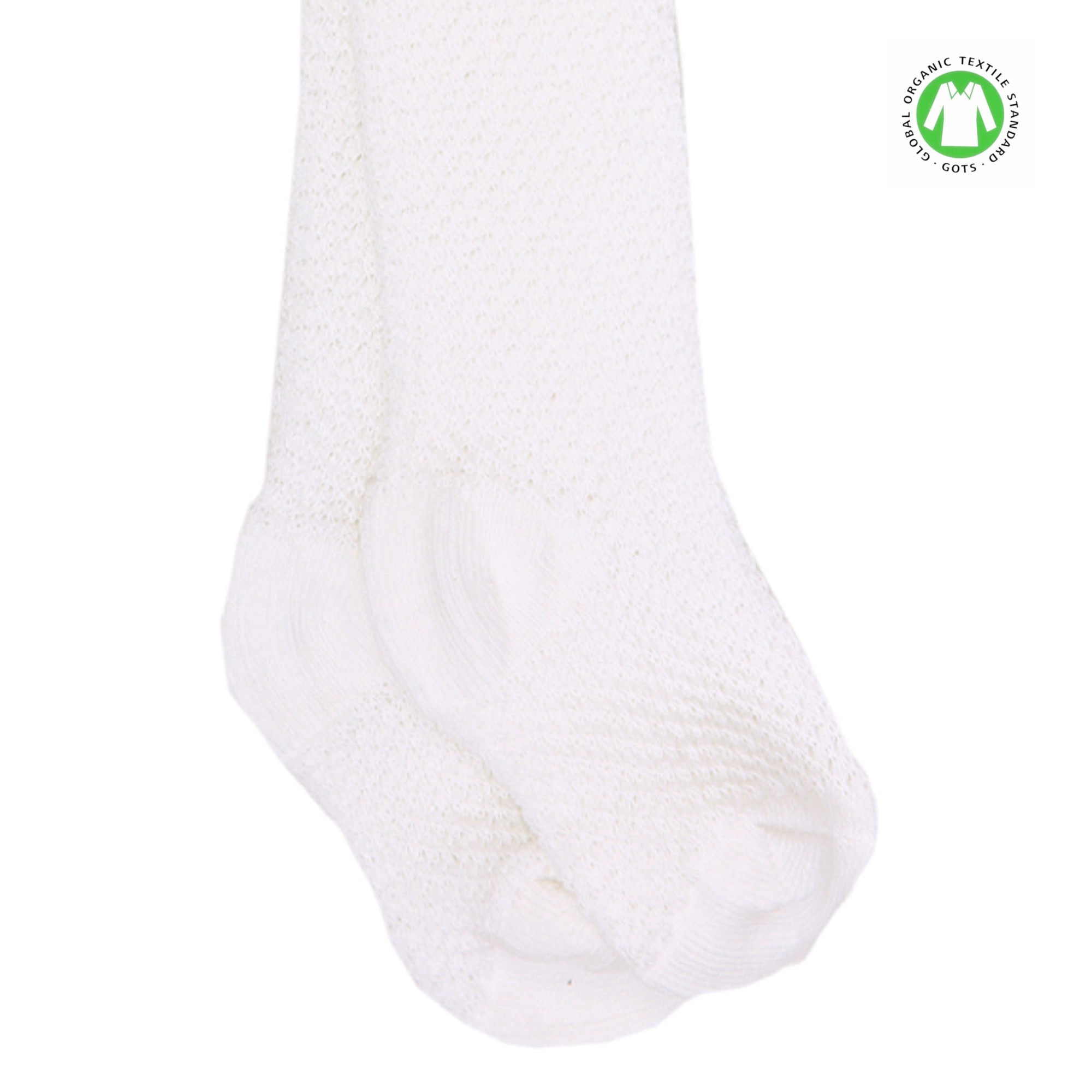 Fabriqués à partir de coton biologique certifié, ils garantissent confort et respect de la peau délicate de votre enfant, tout en assurant une excellente tenue grâce à leur maille souple et douce. Leur finition ajourée, subtile et raffinée, apporte une note chic à chaque look, été comme hiver.Caractéristiques principales.- Confort optimal : Grâce à leur composition douce et respirante (80 % coton biologique, 17 % polyamide, 3 % élasthanne), ces collants offrent une sensation agréable au contact de la peau de bébé.