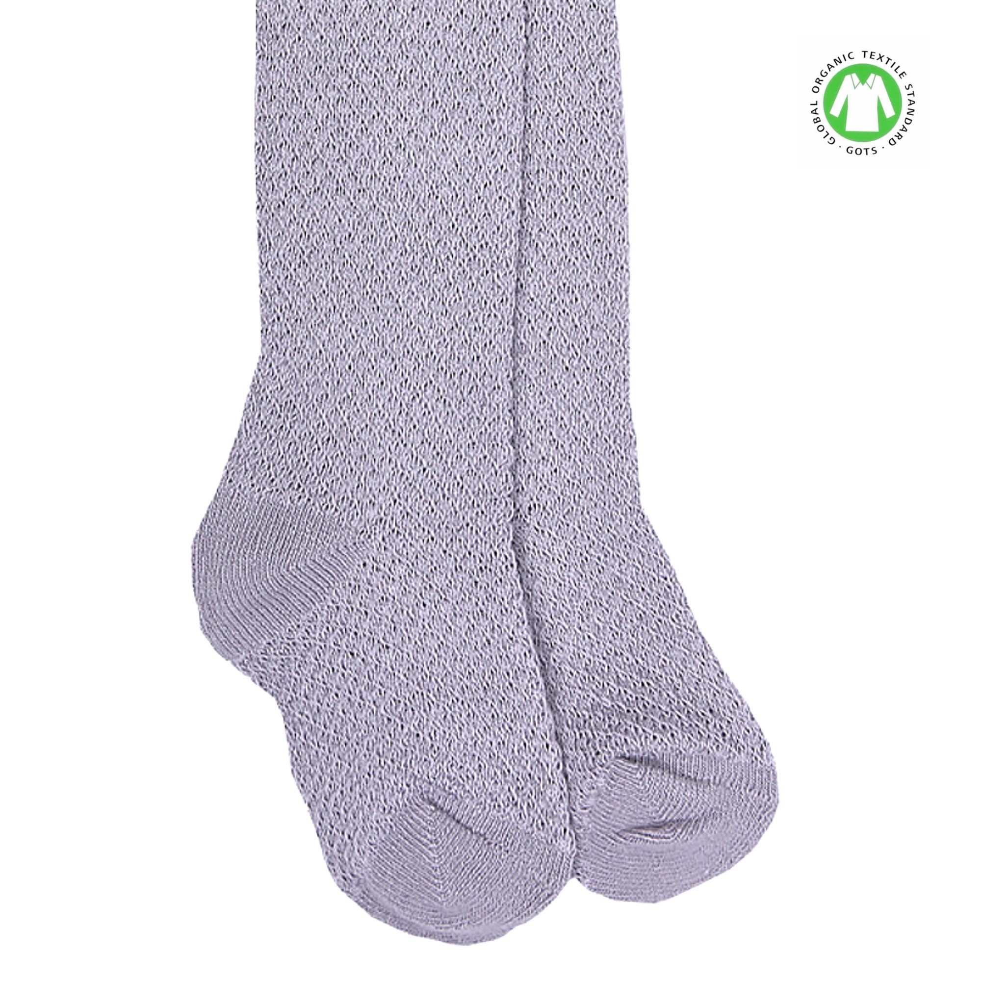 Fabriqués à partir de coton biologique certifié, ils garantissent confort et respect de la peau délicate de votre enfant, tout en assurant une excellente tenue grâce à leur maille souple et douce. Leur finition ajourée, subtile et raffinée, apporte une note chic à chaque look, été comme hiver.Caractéristiques principales.- Confort optimal : Grâce à leur composition douce et respirante (80 % coton biologique, 17 % polyamide, 3 % élasthanne), ces collants offrent une sensation agréable au contact de la peau de bébé.