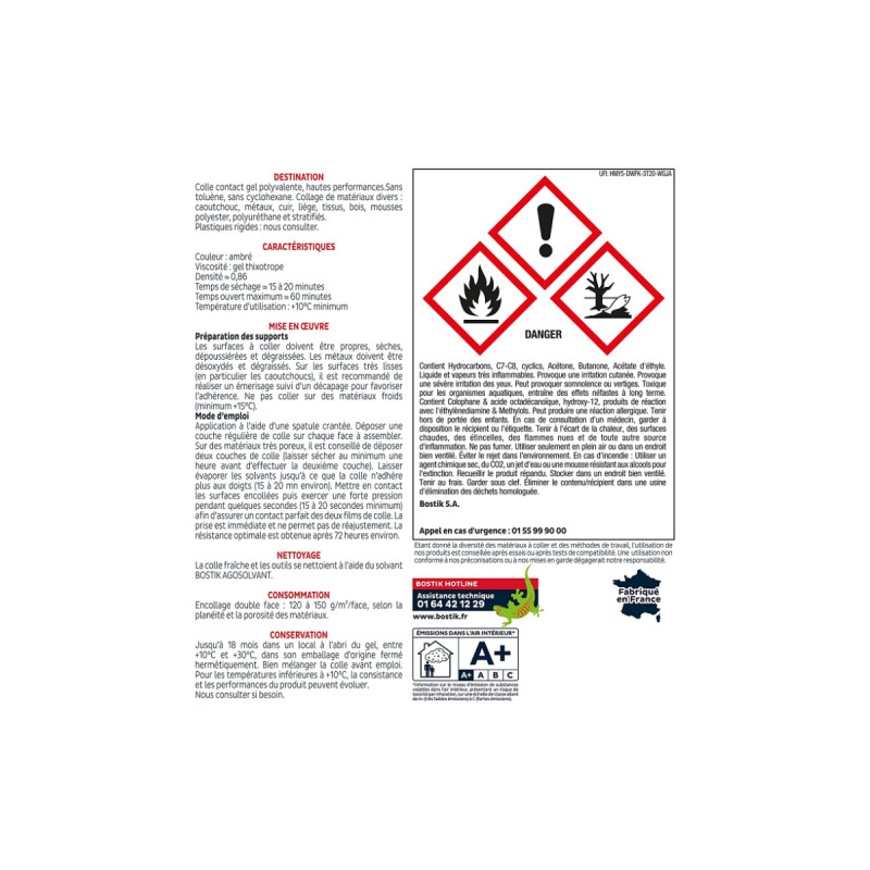 | Libellé | Colle néoprène 1400 BOSTIK 125 ml |