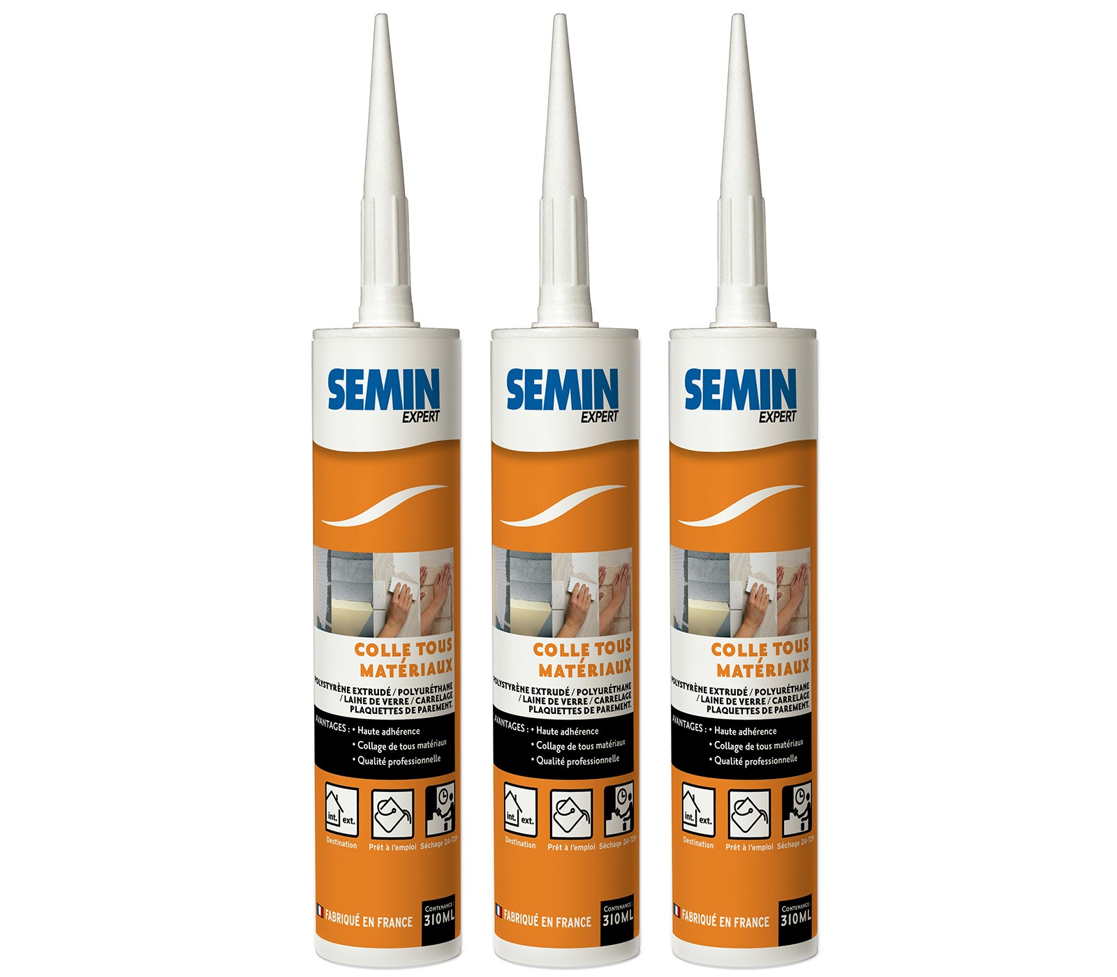 Colle Tout Matériaux Semin, Prêt à l'Emploi, Intérieur/Extérieur, Cartouche de 310 ml (lot de 3)