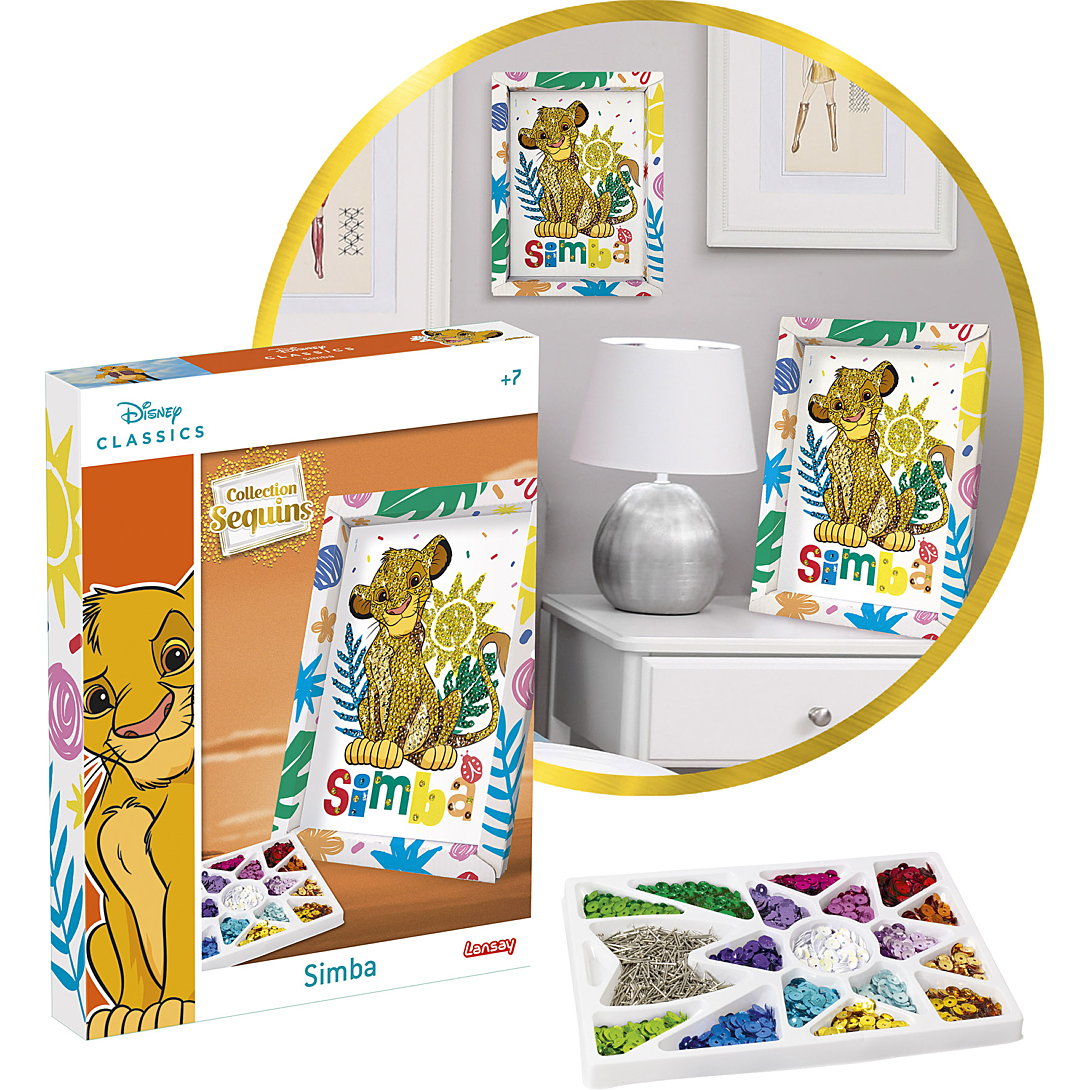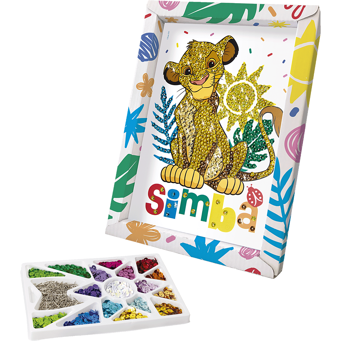 Crée un tableau scintillant en sequins de Simba ! Un compartiment à sequins t'aidera à ranger les sequins fournis sans les mélanger ! Dès 7 ans.
