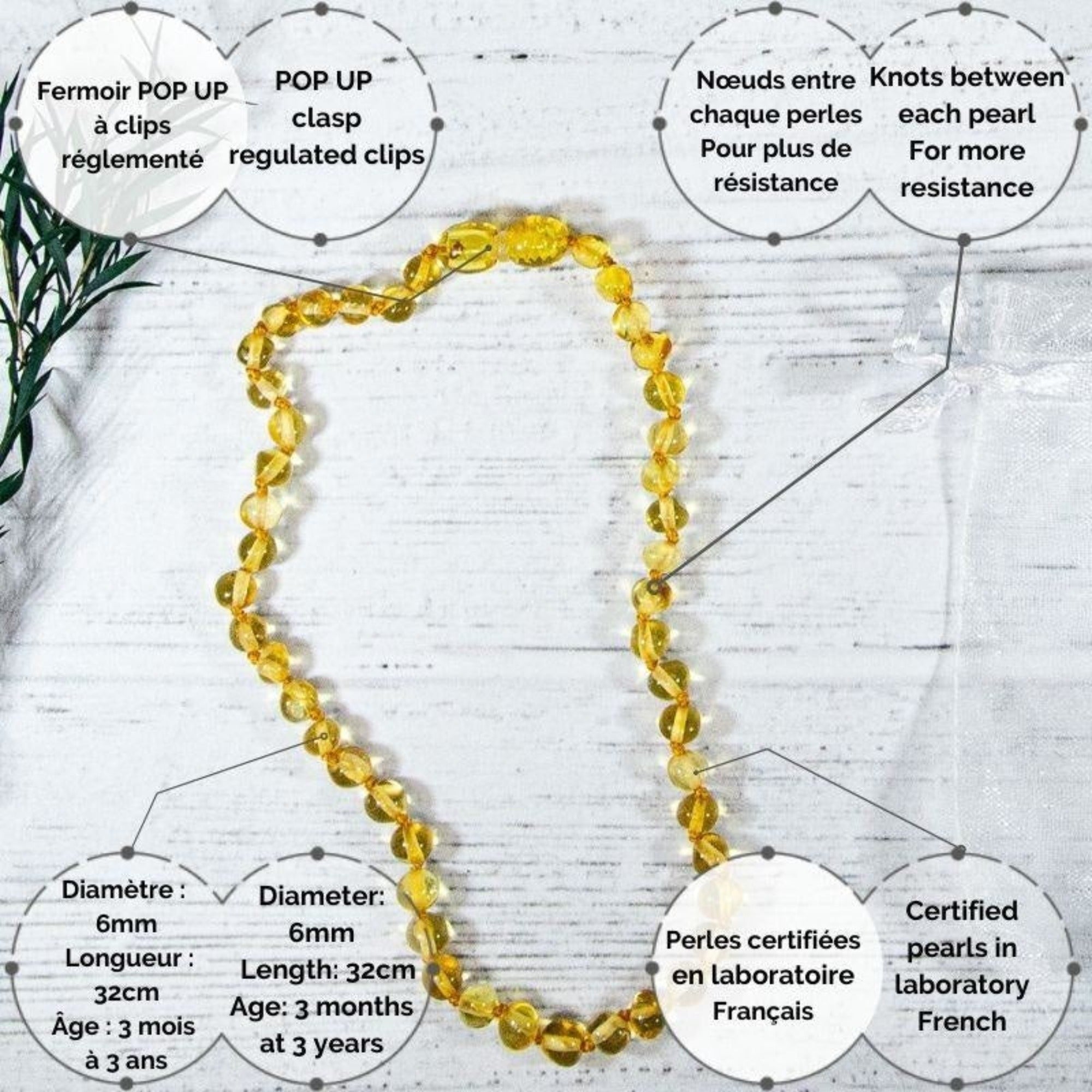 | Libellé | Collier Ambre bébé - Lemon |