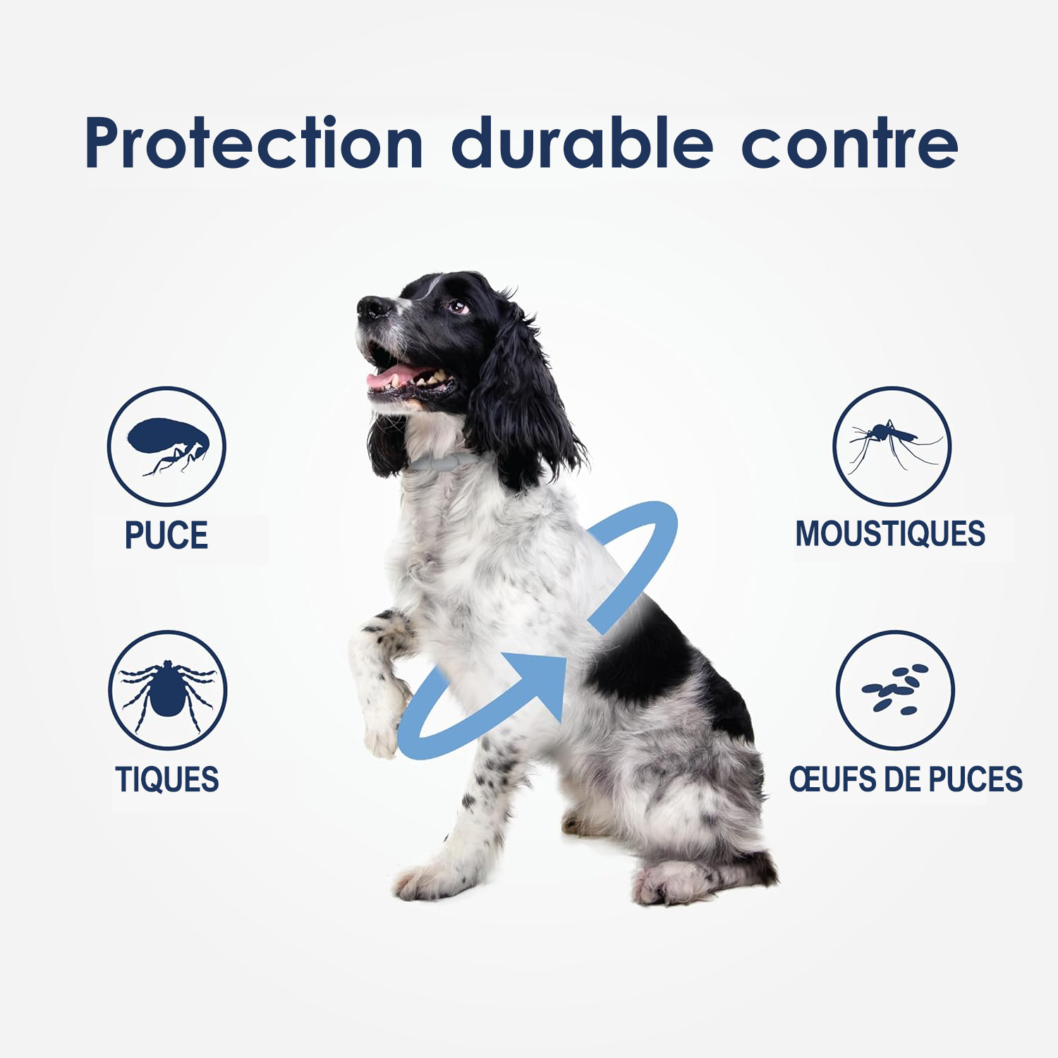 🐾 TAILLE UNIVERSELLE 🐾 Que vous ayez un chien de petite ou de grande taille, ce collier antipuces et anti - tiques pour chiens est entièrement réglable pour s'adapter parfaitement à votre chien. ⚡️ PROTECTION TOTALE CONTRE PUCES ET TIQUES ⚡️ Ce collier antipuces et anti - tiques pour chiens, résistant à l'eau, tue les puces, les tiques, les œufs de puces et les larves de puces. 🌿 PRÉVENTION DES NOUVELLES INFESTATIONS 🌿 Le collier contient des ingrédients actifs de qualité vétérinaire, le deltaméthrine et le pyriproxyfène, pour éliminer les puces, les tiques, les œufs de puces et les larves de puces sur votre chien et prévenir de nouvelles infestations. 📅 DURÉE DE VIE LONGUE 📅 Chaque collier pour chien, très durable, offre une protection continue contre les puces et les tiques pendant 6 mois. En acheter deux vous assure d'un an de protection.