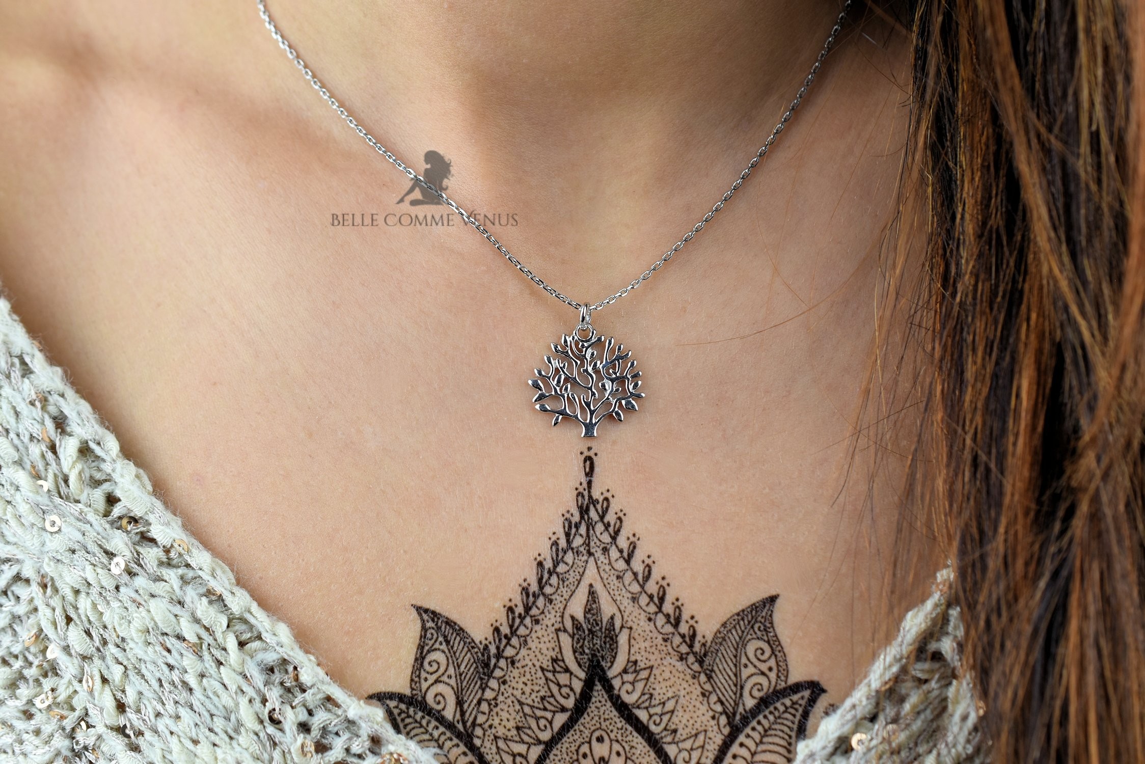 Longueur chaîne : 45 cm, Dimension pendentif arbre de vie : 2 cm x 2 cm