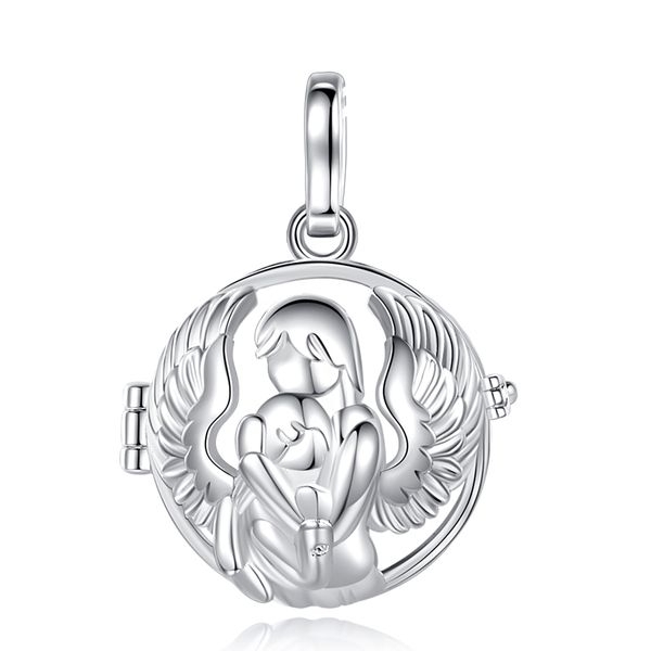 A la recherche d'un cadeau à offrir pour une baby shower ? Ce magnifique bola de grossesse convient parfaitement. Le pendentif cage présente une mère, son enfant et un ange gardien aux anges déployés avec une boule rose.* Longueur collier : 114 cm * Matière pendentif : Cuivre, plaqué argent * Diamètre de la boule : 18 mm Fonctions : carillon, lien prénatal, détendre maman, apaiser bébé après la naissance, bijoux design Contenu : 1 cage, 1 boule rose, 1 chaine, 1 boite
