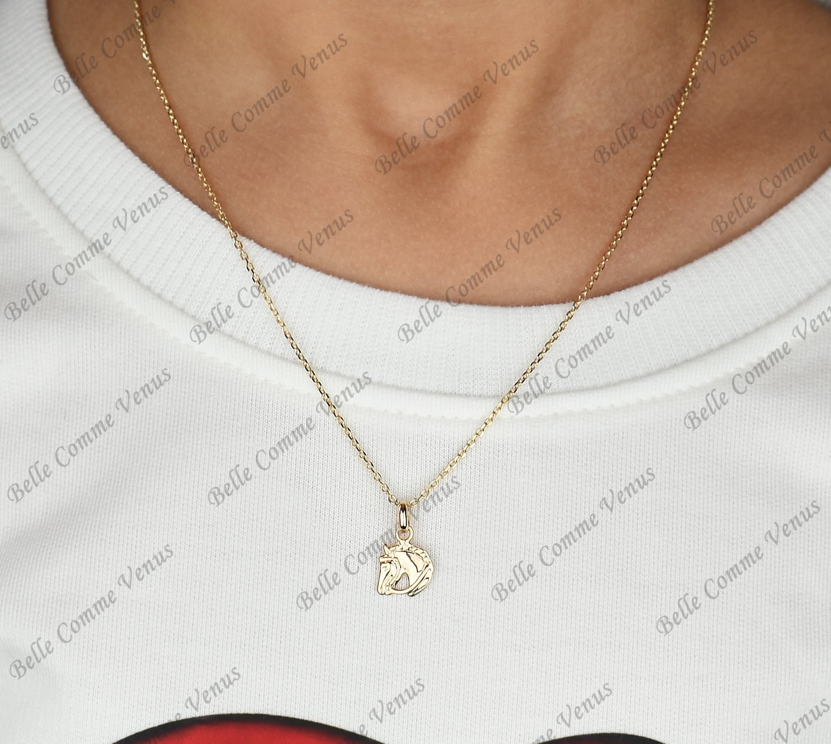 Longueur chaîne : 40 cm, Pendentif de petite taille, discret, tête de cheval : 0.8 cm * 0.9 cm