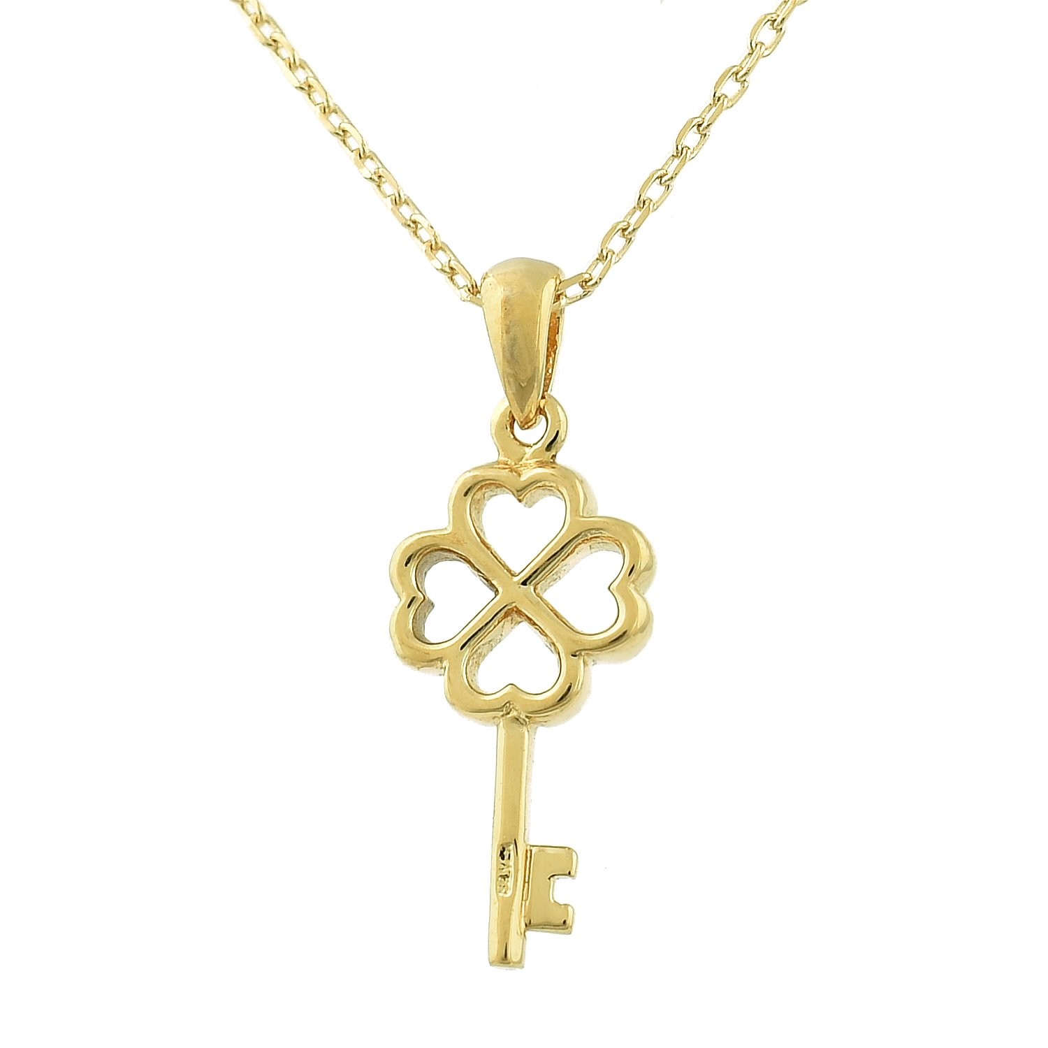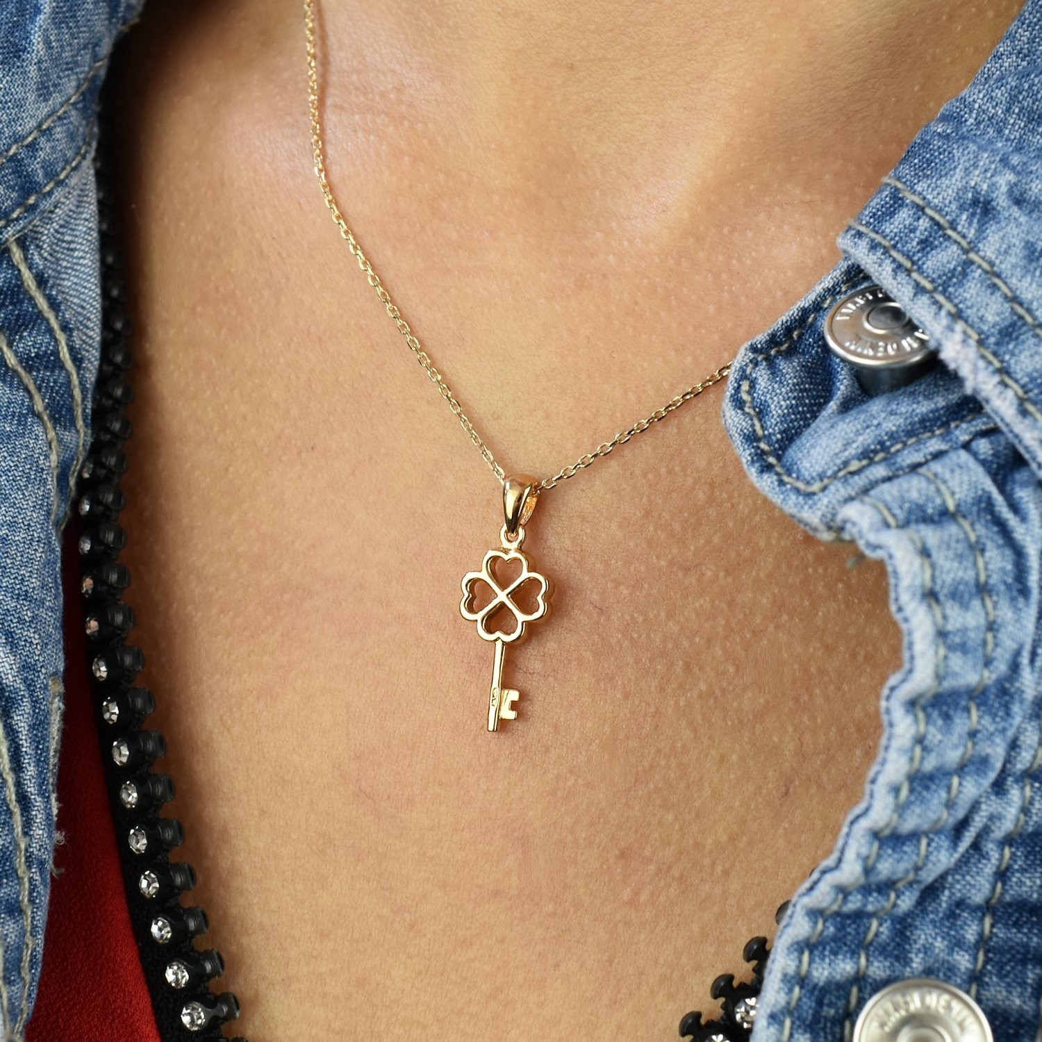 Découvrez notre magnifique collier clé de coeurs en forme de trèfle, réalisé en Plaqué OR 750 3 microns.