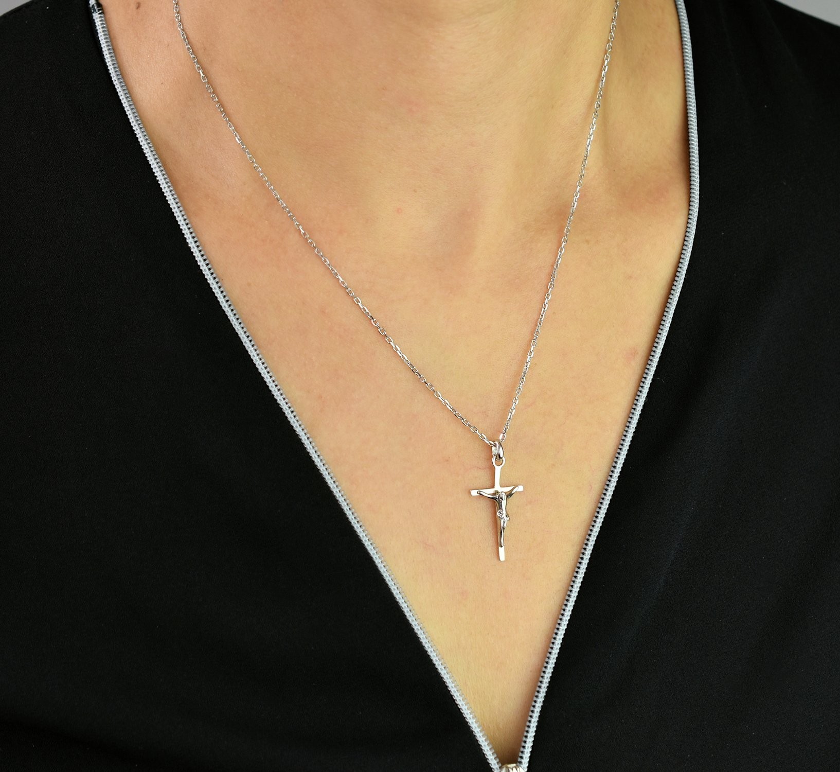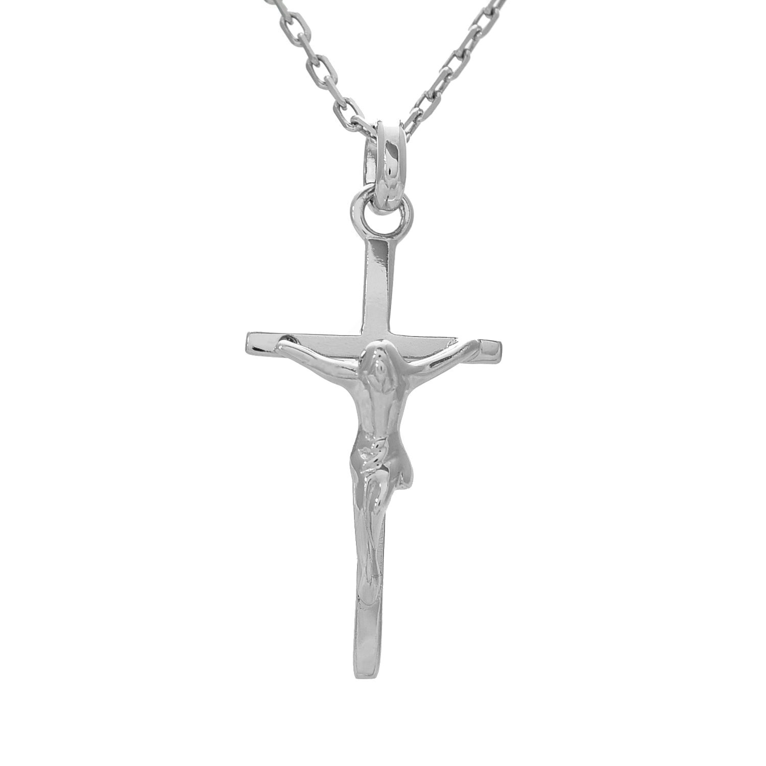 Collier Croix crucifix Jésus Christ Argent 925 Rhodié