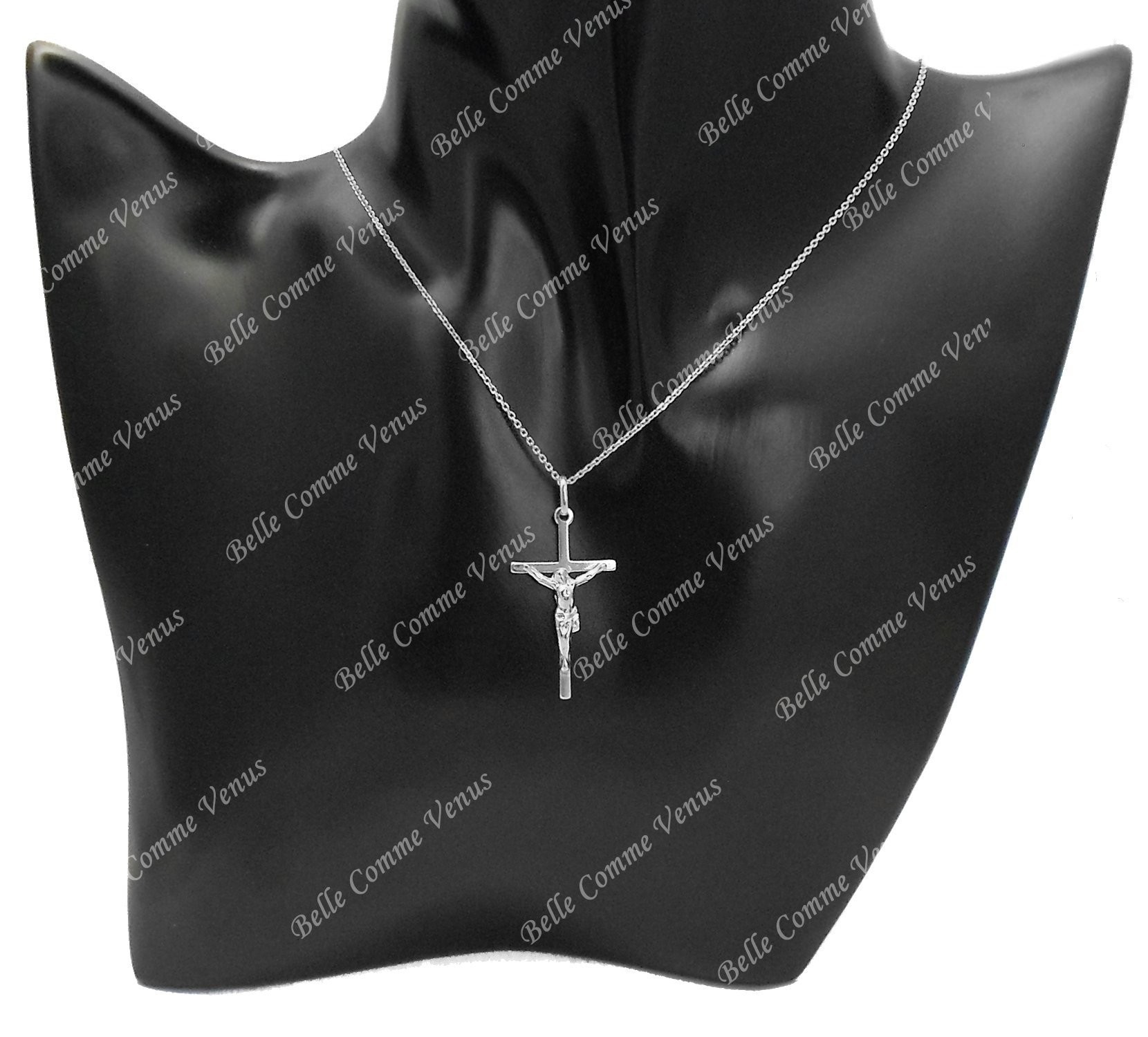 Libellé Collier Croix crucifix Jésus Christ Argent 925 Rhodié