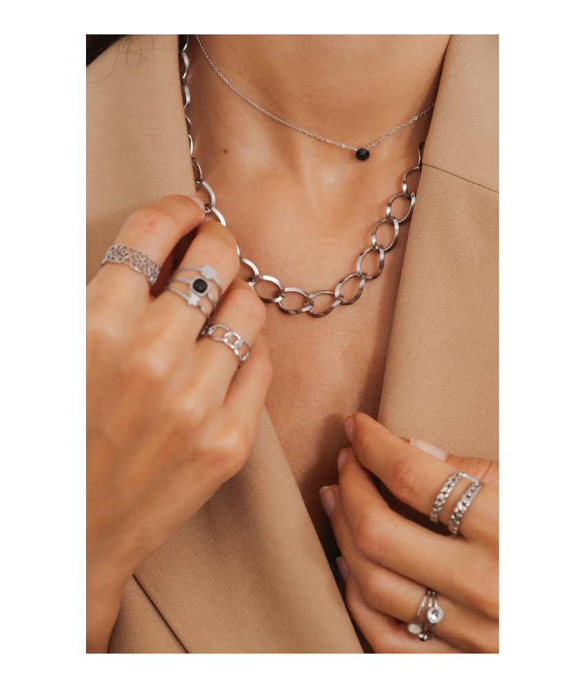 | Libellé | Collier en acier argenté chaîne grosse maille, chaînette réglable avec pierre Crystal Swarovski |