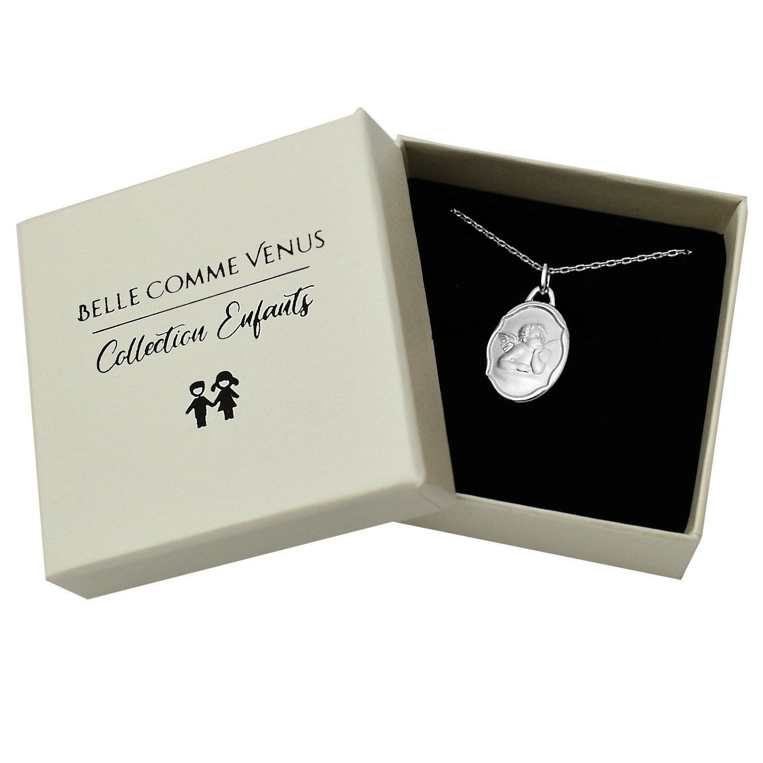 Un bijou est un cadeau très spécial, c'est pour cela que ce collier médaille ange baptême Argent 925 Rhodié est livré dans un écrin à l'effigie de la marque Belle Comme Venus accompagné de son certificat d'authenticité et de sa pochette cadeau.