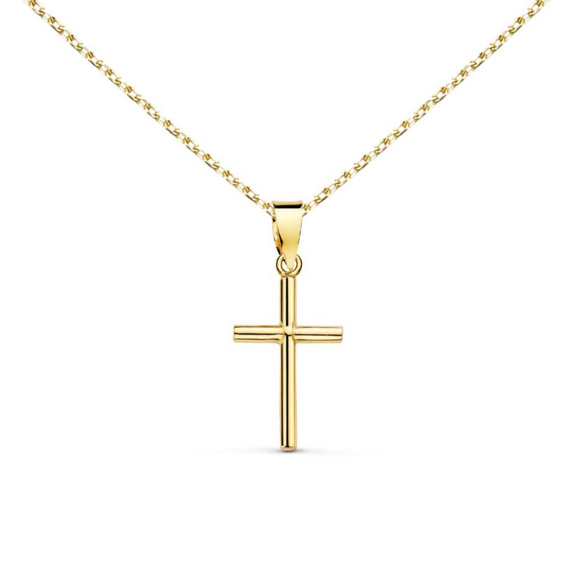 Libellé Collier - Médaille Croix Or 18 Carats 750/000 Jaune - Chaine Dorée