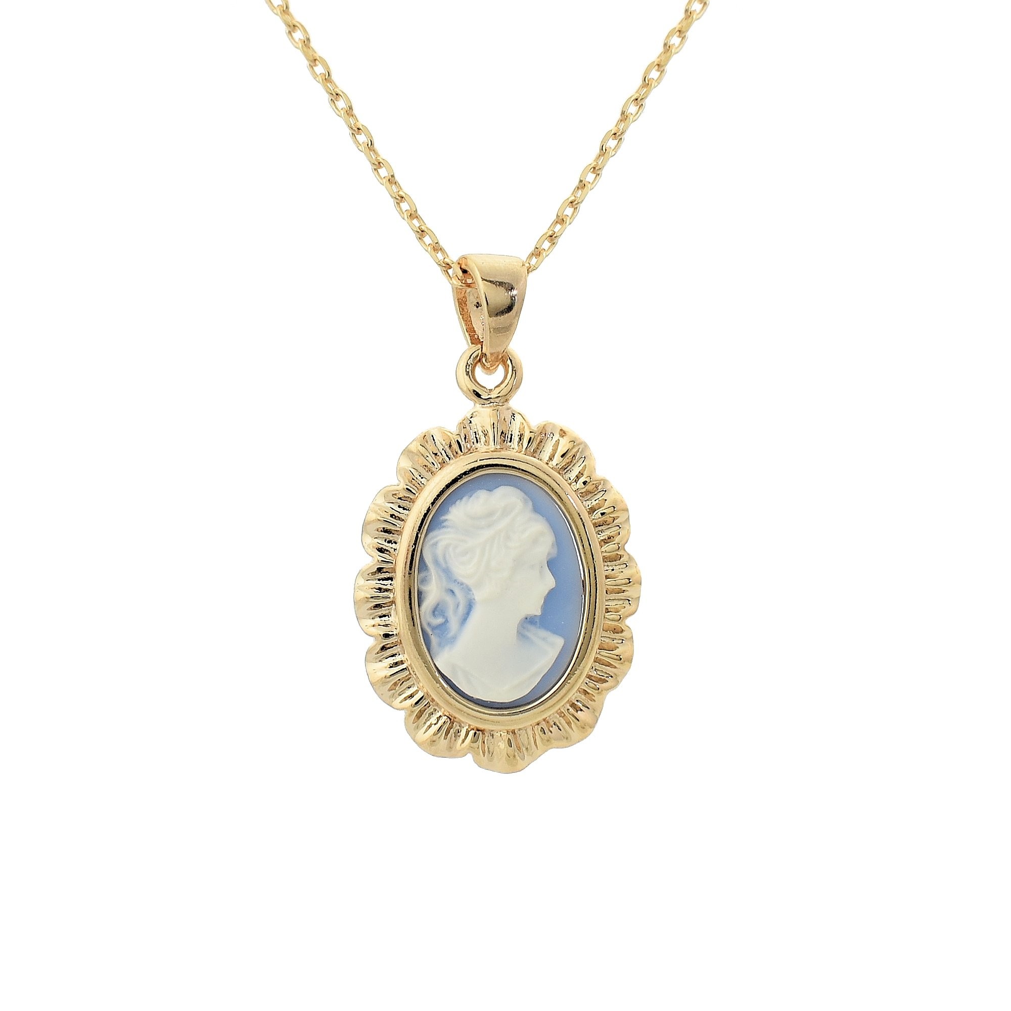 Libellé Collier médaillon camée bleu et blanc Plaqué OR 750 3 microns