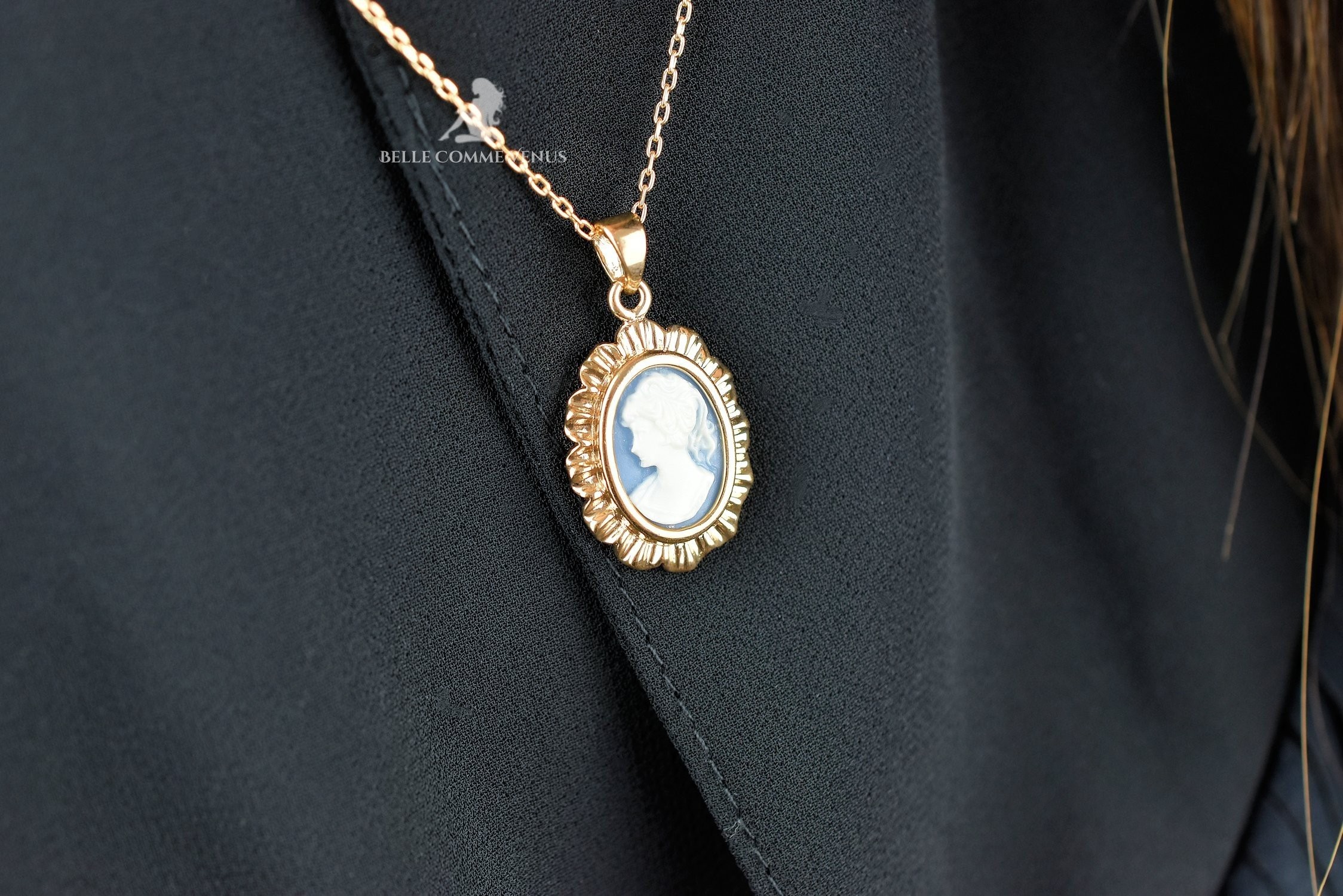 Un bijou est un cadeau très spécial, c'est pour cela que ce collier médaillon camée bleu et blanc Plaqué OR 750 3 microns est livré dans un écrin à l'effigie de la marque Belle Comme Venus accompagné de son certificat d'authenticité et de sa pochette cadeau : pour que votre présent soit le plus beau des cadeaux.