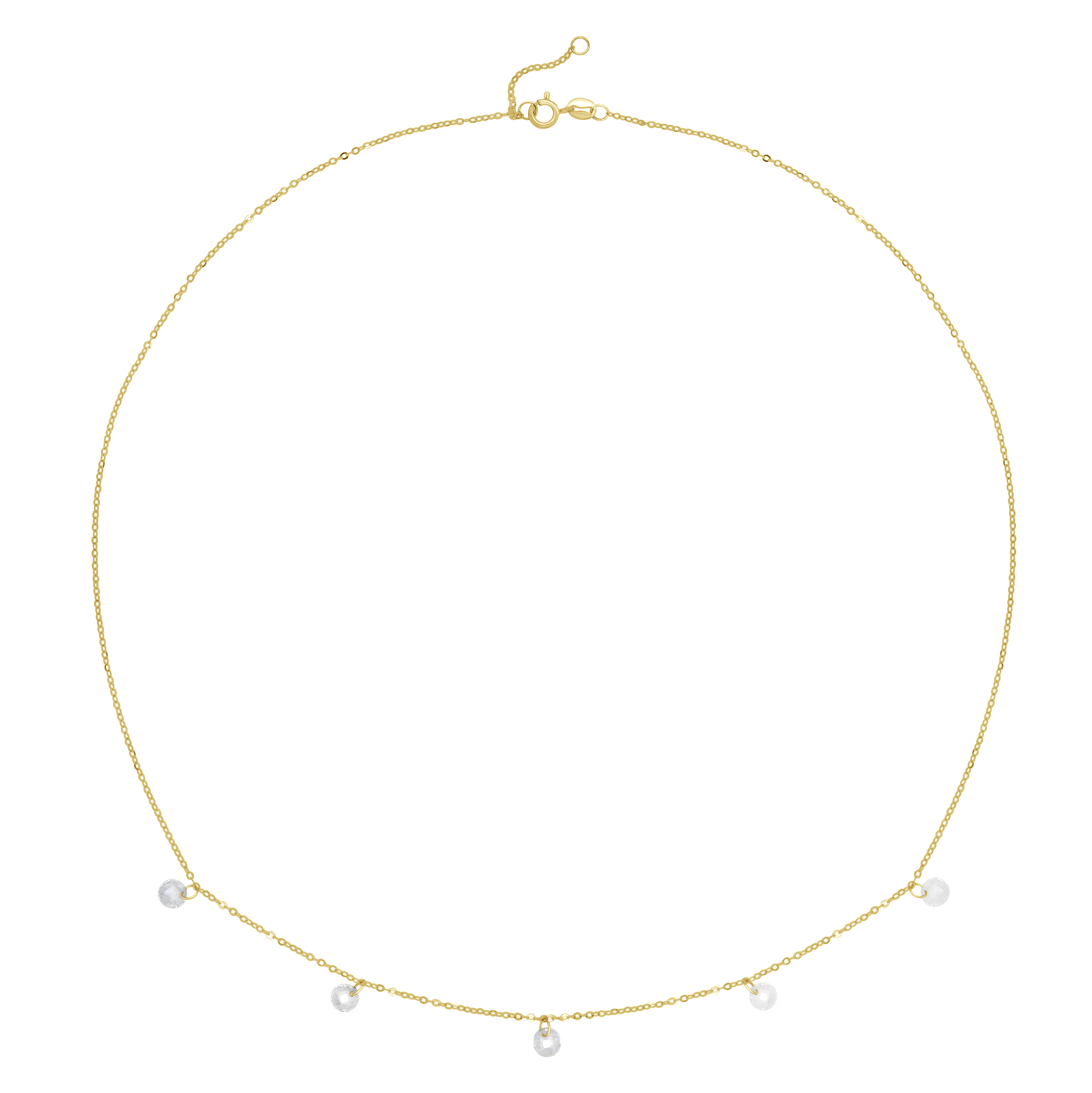 Collier - Chaîne Maille Forçat - Orné de 5 Oxydes de Zirconium en Pampille - Fermoir Anneau Ressort -Longueur Réglable de 40 à 42 cm - Livré avec son Certificat d'Authenticité et de Garantie Internationale