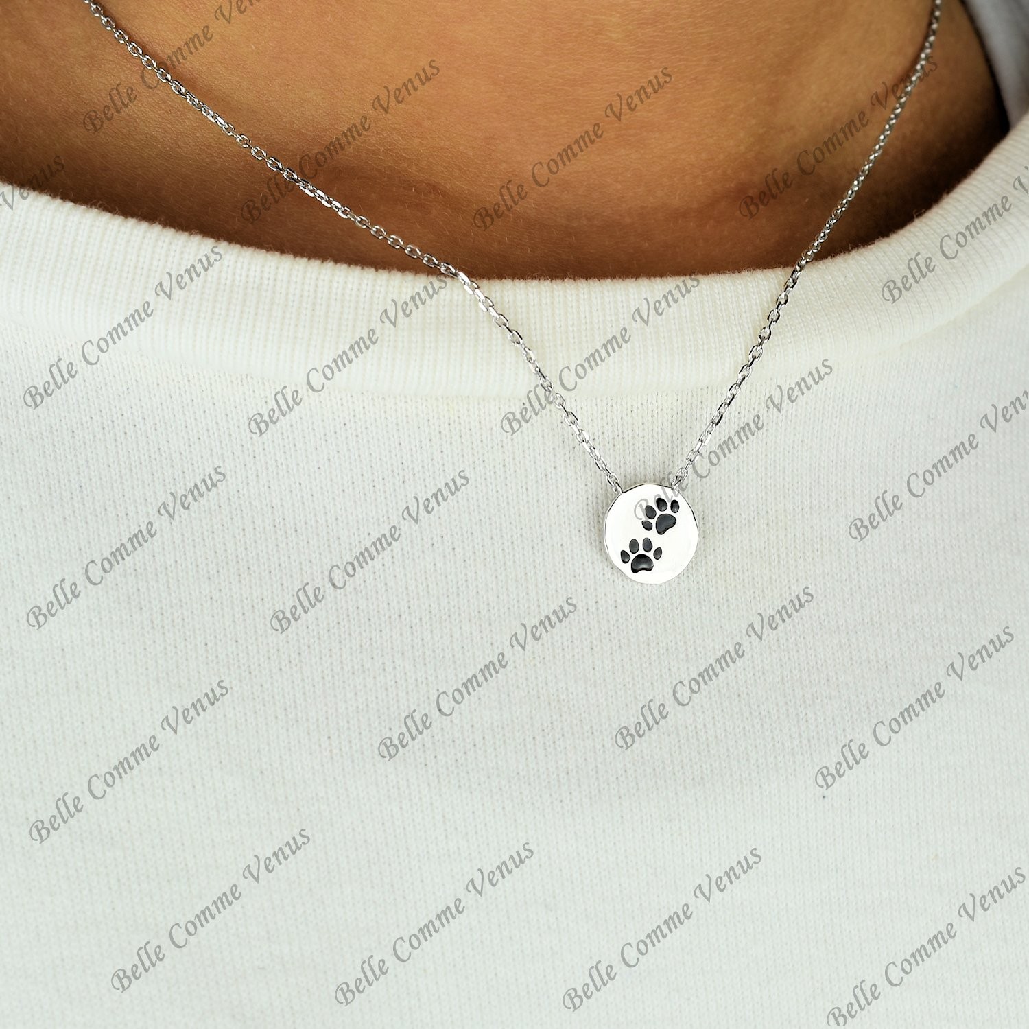 Collier patte de chien chat coussinet émail coloré noir Argent 925 Rhodié