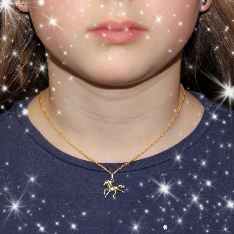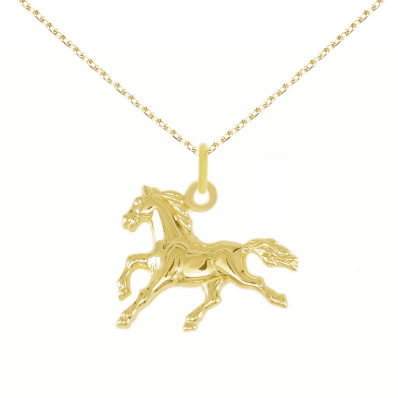 Collier - Pendentif Cheval Or Jaune - Chaine Dorée Offerte - Enfant