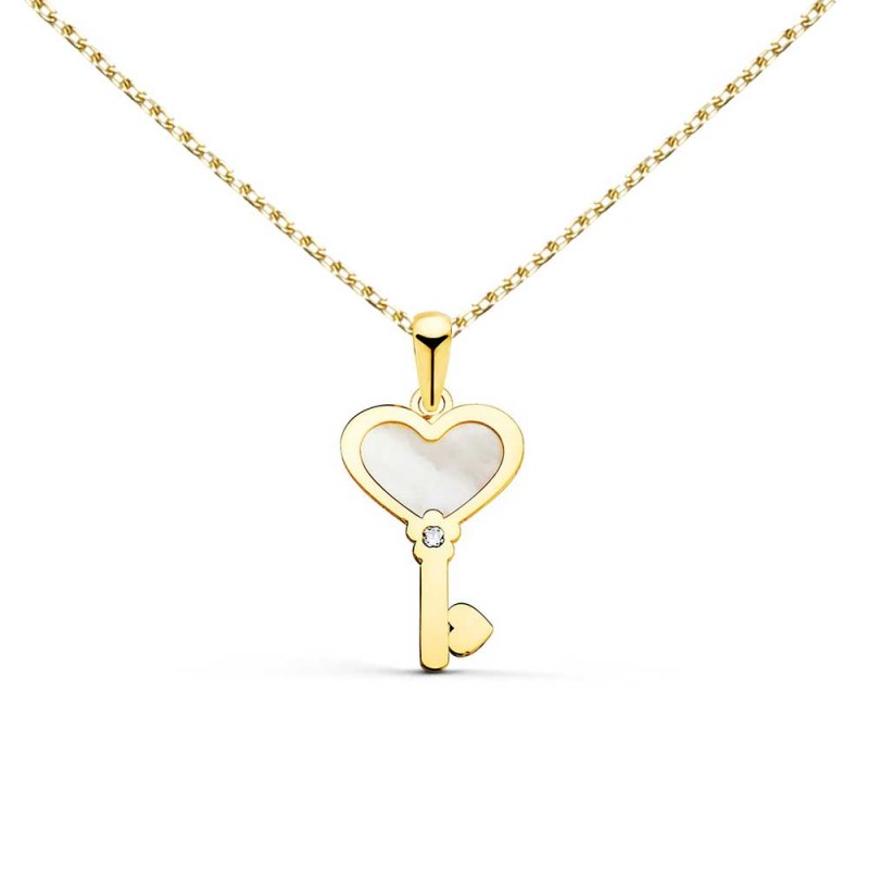 | Libellé | Collier - Pendentif Clef d'Amour Or 18 Carats 750/000 Jaune et Nacre - Chaine Dorée |